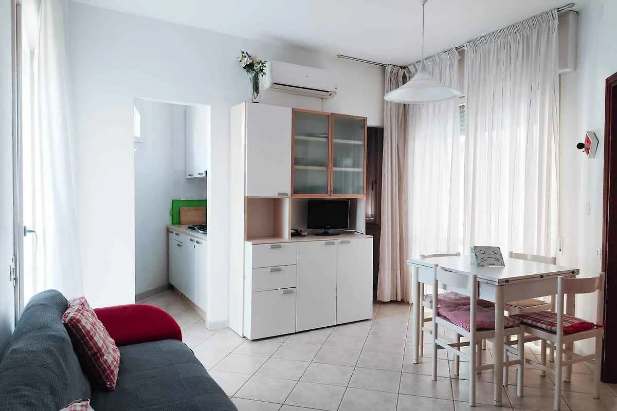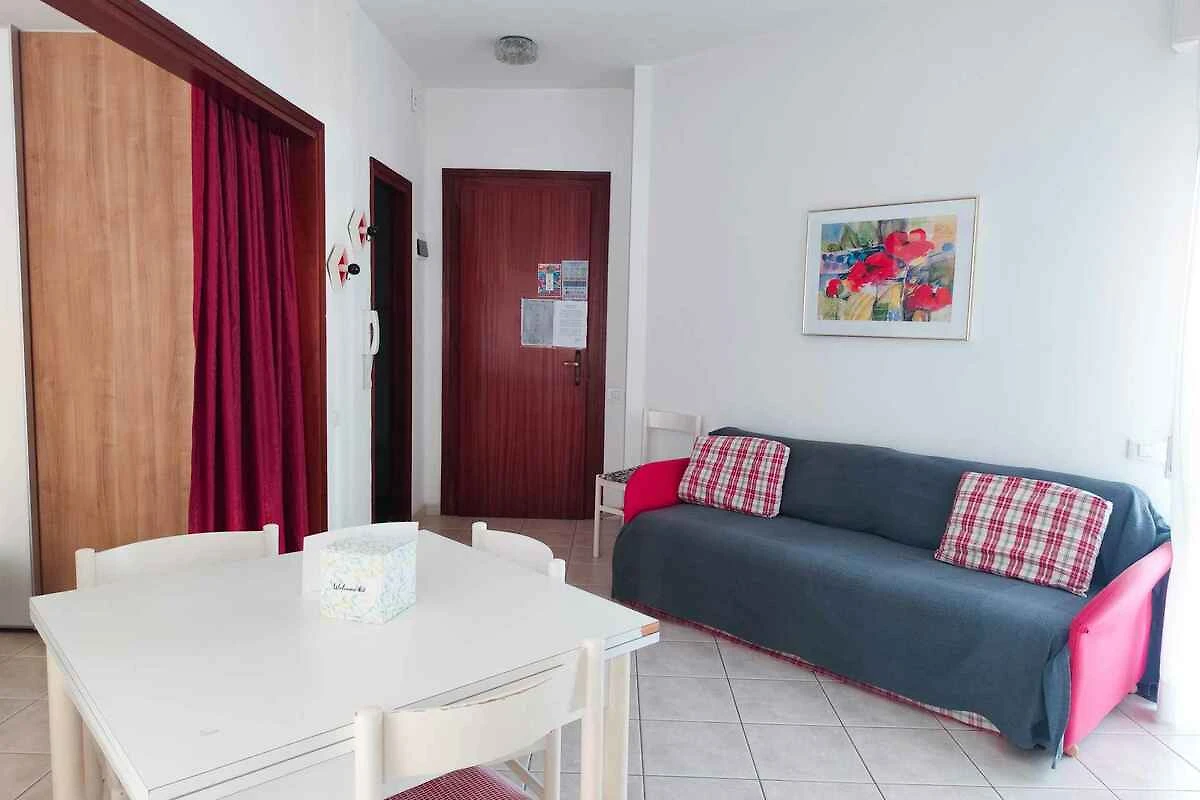 Lido di Jesolo. Die Ferienwohnung befindet sich in einer Residenz, auf einem offenen Grundstück. Die Zufahrt erfolgt über einen Weg (asphaltiert). Parkplatz (für 1 Pkw) auf dem Grundstück.