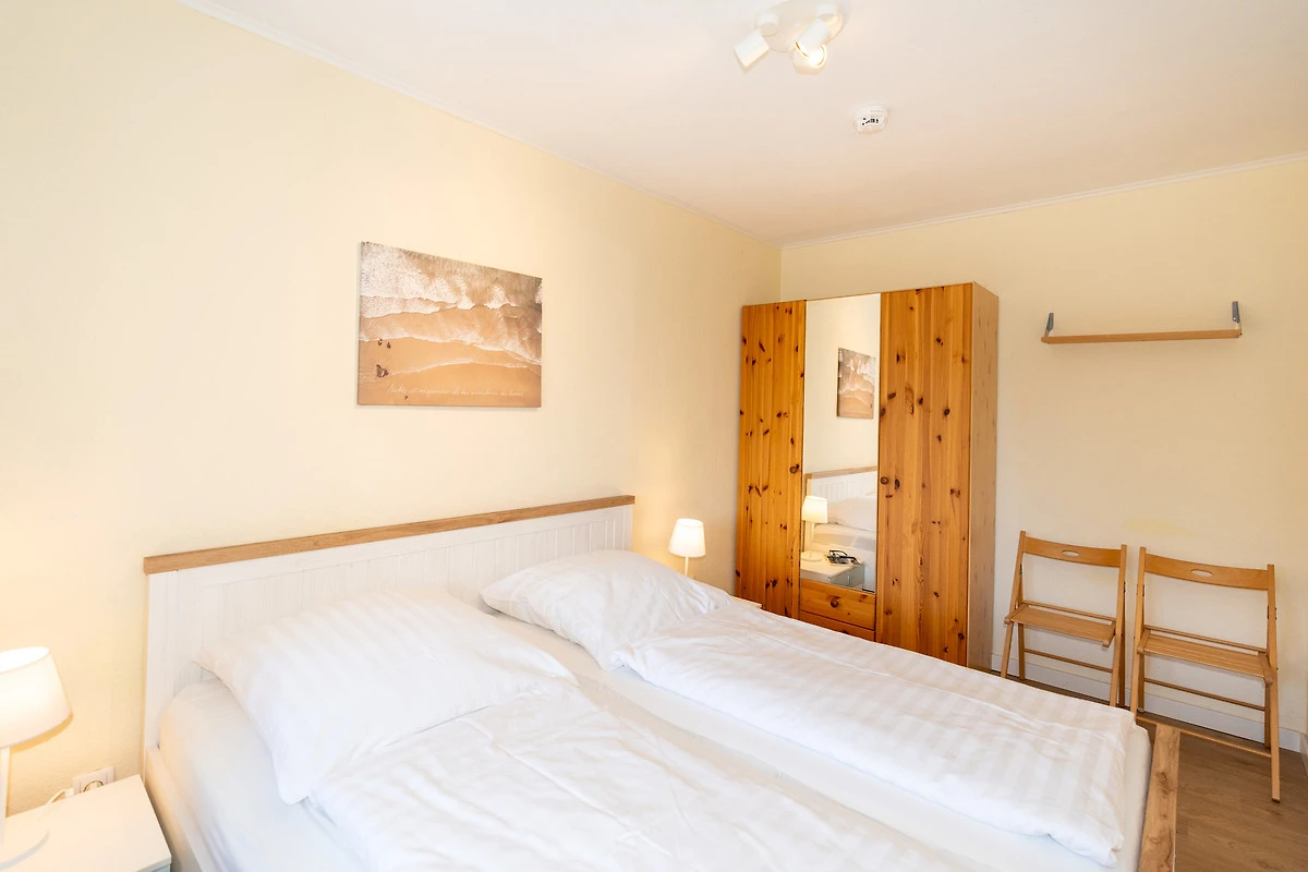 Das Schlafzimmer überzeugt durch ein neues Doppelbett (180x 200) und einen Kleiderschrank. Im modernen Badezimmer finden Sie eine Eckdusche, Waschbecken, WC und einen Handtuchheizkörper vor.