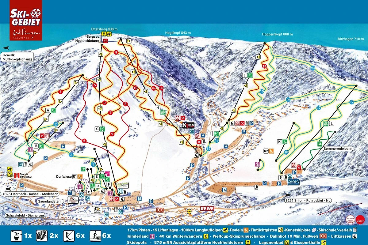 WILLINGEN/Upland im NATURPARK DIEMELSEE: Vier-Jahreszeiten-Urlaub im meistbesuchten Ferienort der deutschen Mittelgebirge. Willingen (550-843 m) ist heilklimatischer Kur & Wintersportort; sein breites Freizeitangebot ist in Deutschland einmalig, weshalb Willingen mit seinem Slogan „Alles was ich will“ gleichermaßen beliebt ist bei Jung und Alt.