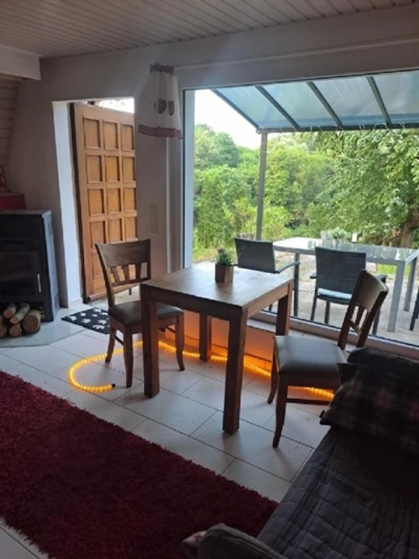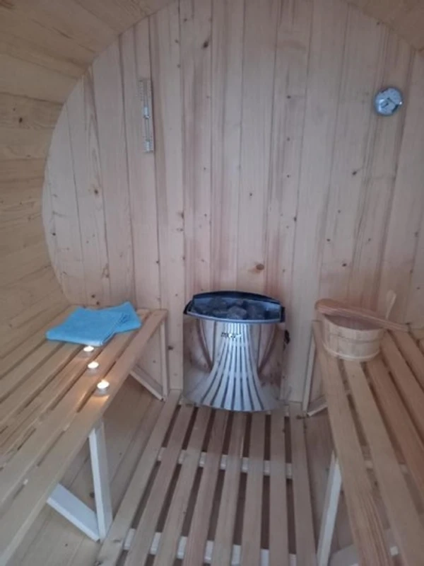 Es ist ausgestattet mit Sat-TV, DVD, Soundbar, 2 x 2 Schlafplätze (Bett im 1. OG und Schlafboden mit Leiter erreichbar), Bad mit Dusche und WC, Saunafass, Badezuber (kalt/warm holzbeheizt), Kaminofen als primäre Heizquelle, optional Klimaanlage (Klimasplitgerät kühlen & heizen), voll ausgestatteter Küche mit Kaffeemaschine, Wasserkocher und Kühlschrank, offene Terrasse mit Gartenmöbeln, 1 Home Billardtisch, Aussengrill und Saunafass, 1 PKW-Stellplatz am Haus. Die Mitnahme von Haustieren ist gestattet.