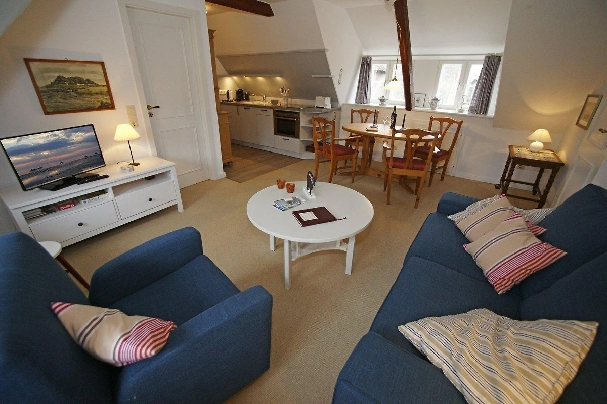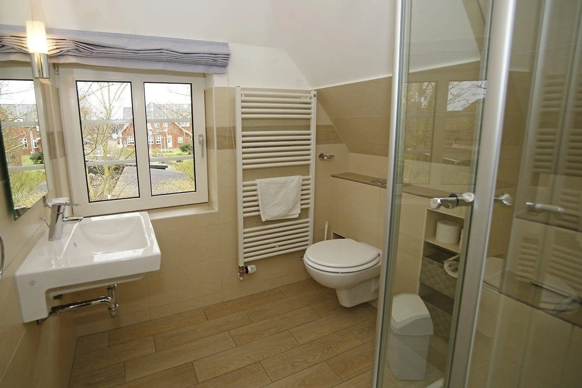 Die Ferienwohnung in Utersum bietet einen einladenden Aussenbereich mit einem gemütlichen Aussensitzplatz direkt vor dem Haus, ideal für entspannte Stunden im Freien. Gäste können den örtlichen Gartenbereich nutzen, der mit Gartenmöbeln ausgestattet ist und zum Verweilen einlädt. Die Wohnung liegt in unmittelbarer Nähe zum Strand (1 km) und den angrenzenden Feldern, die zu Spaziergängen und Fahrradtouren einladen. In dem Familienhaus befinden sich zudem zwei weitere abgeschlossene Wohnungen, jeweils für 2 Personen, sowie ein Mansardenzimmer mit Duschbad. Gemeinschaftliche Elemente bieten optimale Möglichkeiten für gesellige Momente. Die zentrale Lage im Ortskern von Utersum ermöglicht den Gästen zudem einen schnellen Zugang zu Einkaufsmöglichkeiten, Restaurants und weiteren Freizeitangeboten.