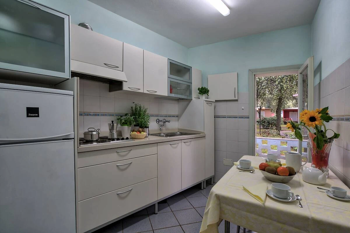 81 Unterkünfte, Rezeption (Safe), 3 Restaurants, Bar, Café, Strandbar, Internet (WLAN), Kinderspielzimmer, Fernsehraum, Supermarkt und Waschsalon. Auch die Kreditkarten "Carta Si" und "Maestro/EC" werden akzeptiert. Kinder unter 6 Jahren zahlen keine Gebühren für Mahlzeiten.