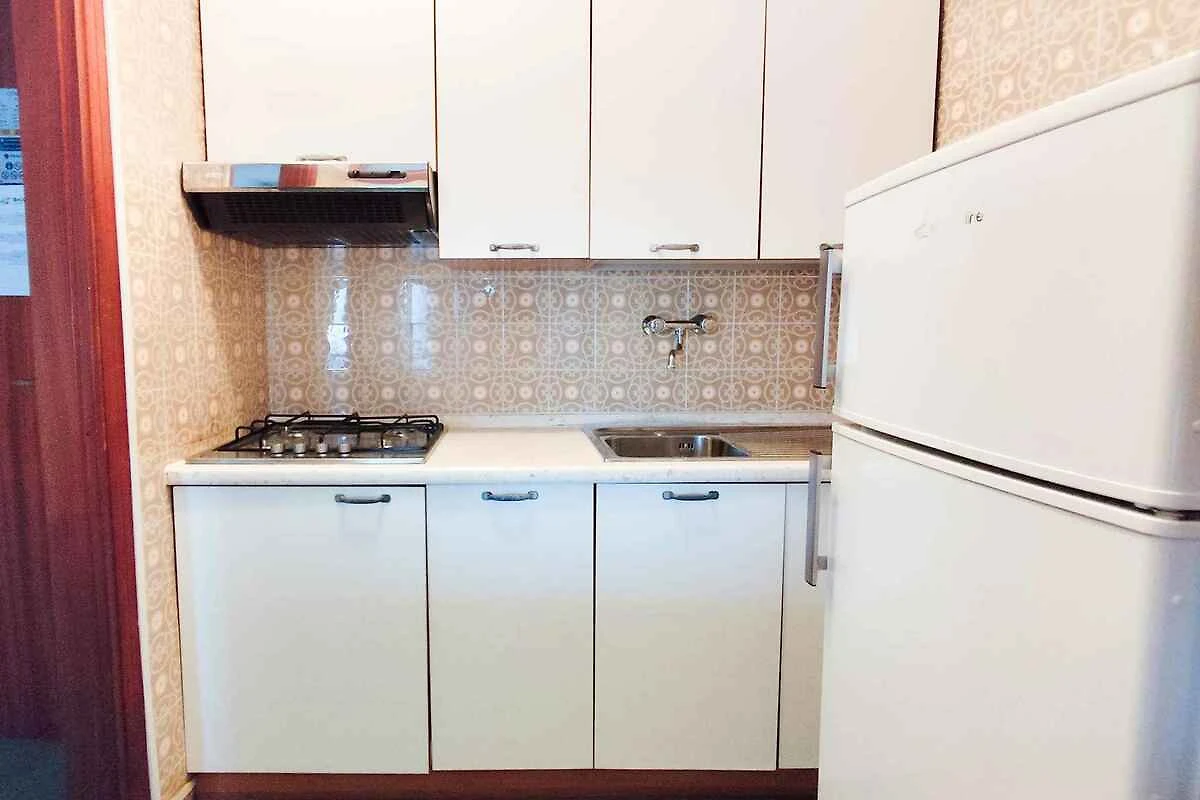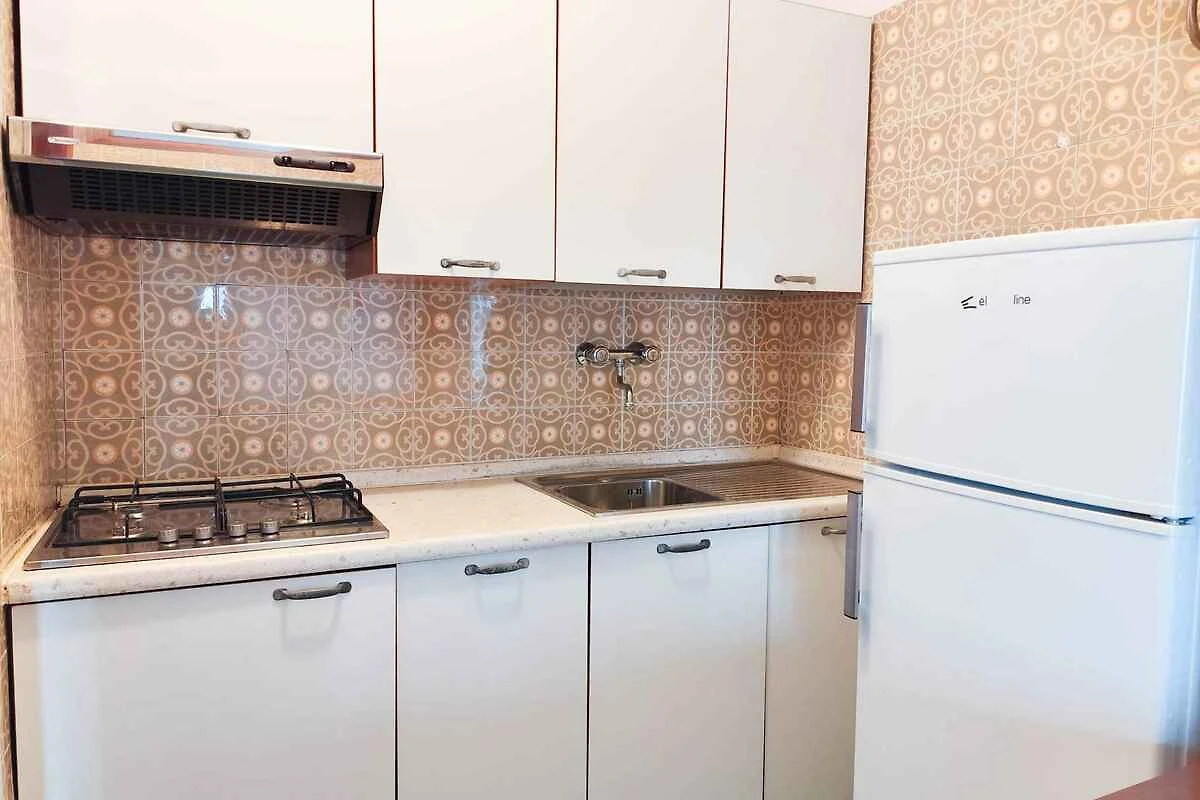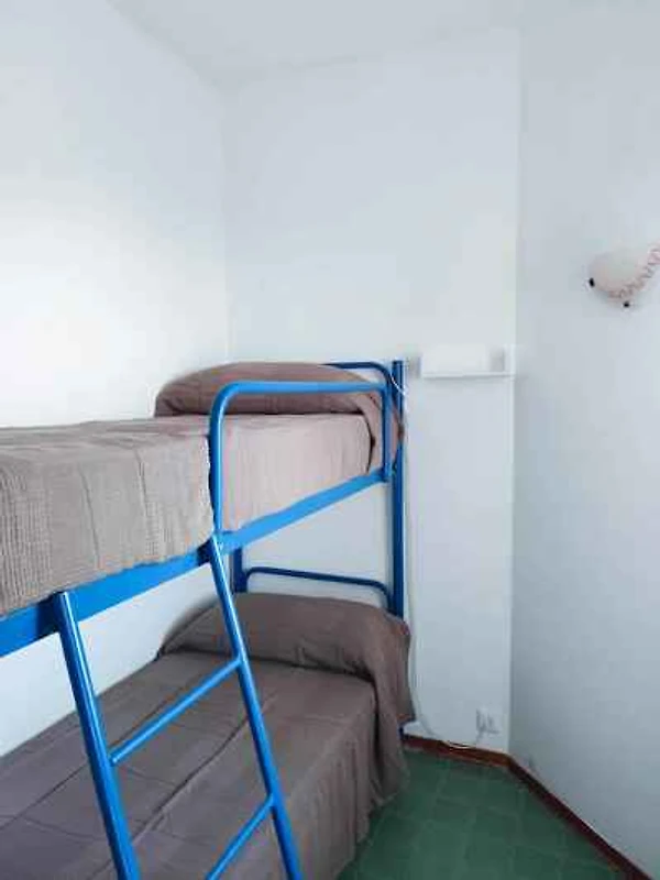 Der Eingang in Ihre Ferienwohnung führt direkt in das Wohn/Schlafzimmer. Wohnzimmer mit 1 Zusatzbett auf Couch/Sofa, Sitzecke, TV, Klimaanlage, Essecke (5 Plätze) und Zugang zum Balkon. Schlafzimmer mit 1 Etagenbett. Schlafzimmer mit 1 Doppelbett. Kochecke im Wohn/Schlafzimmer mit Gasherd (4 Flammen) und Kühlschrank. Bad mit Dusche, 1 Waschbecken und WC.