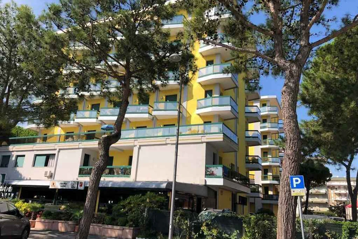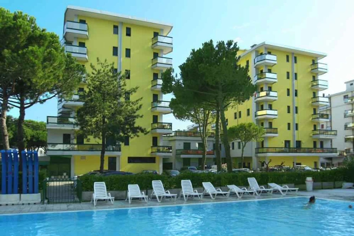 Lido di Jesolo. Die Ferienwohnung befindet sich in einer Residenz, auf einem Grundstück mit Bäumen. Die Zufahrt erfolgt über einen Weg (asphaltiert). Parkplatz (für 1 Pkw) auf dem Grundstück.