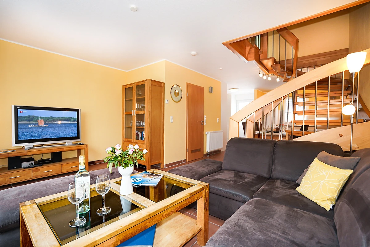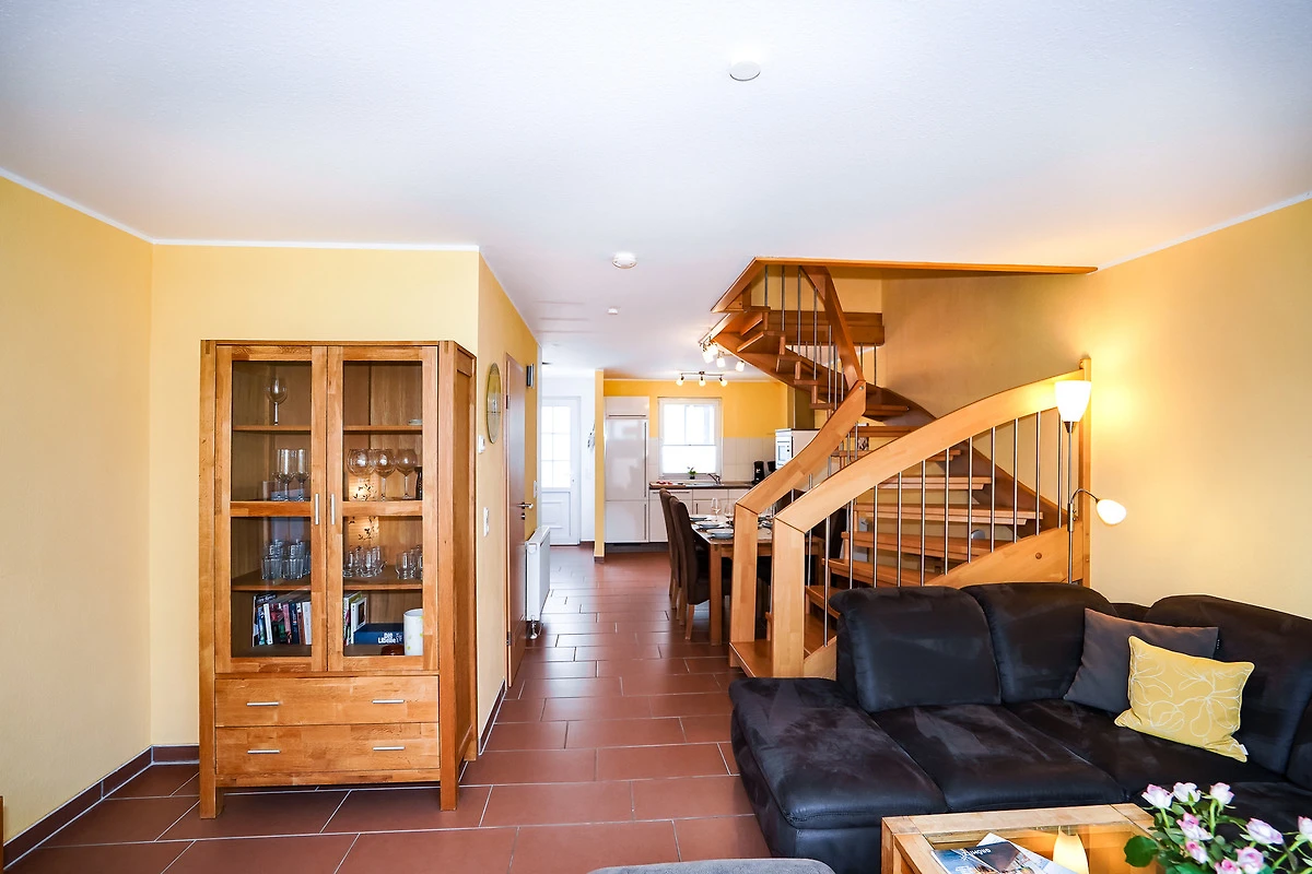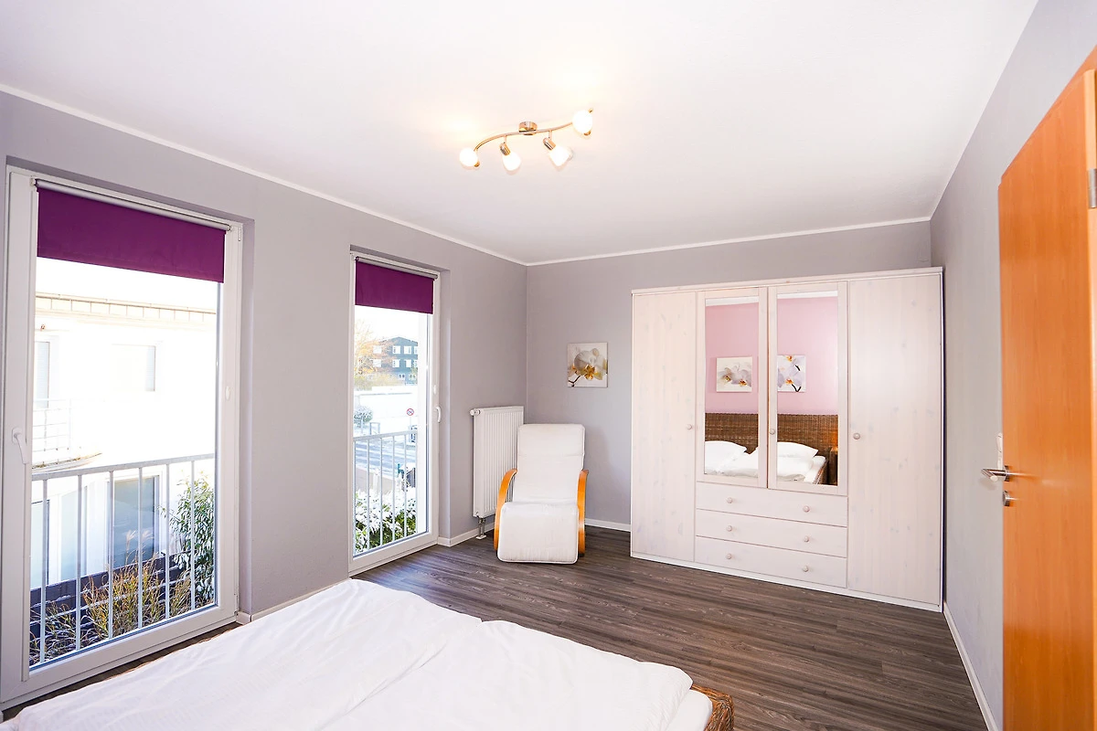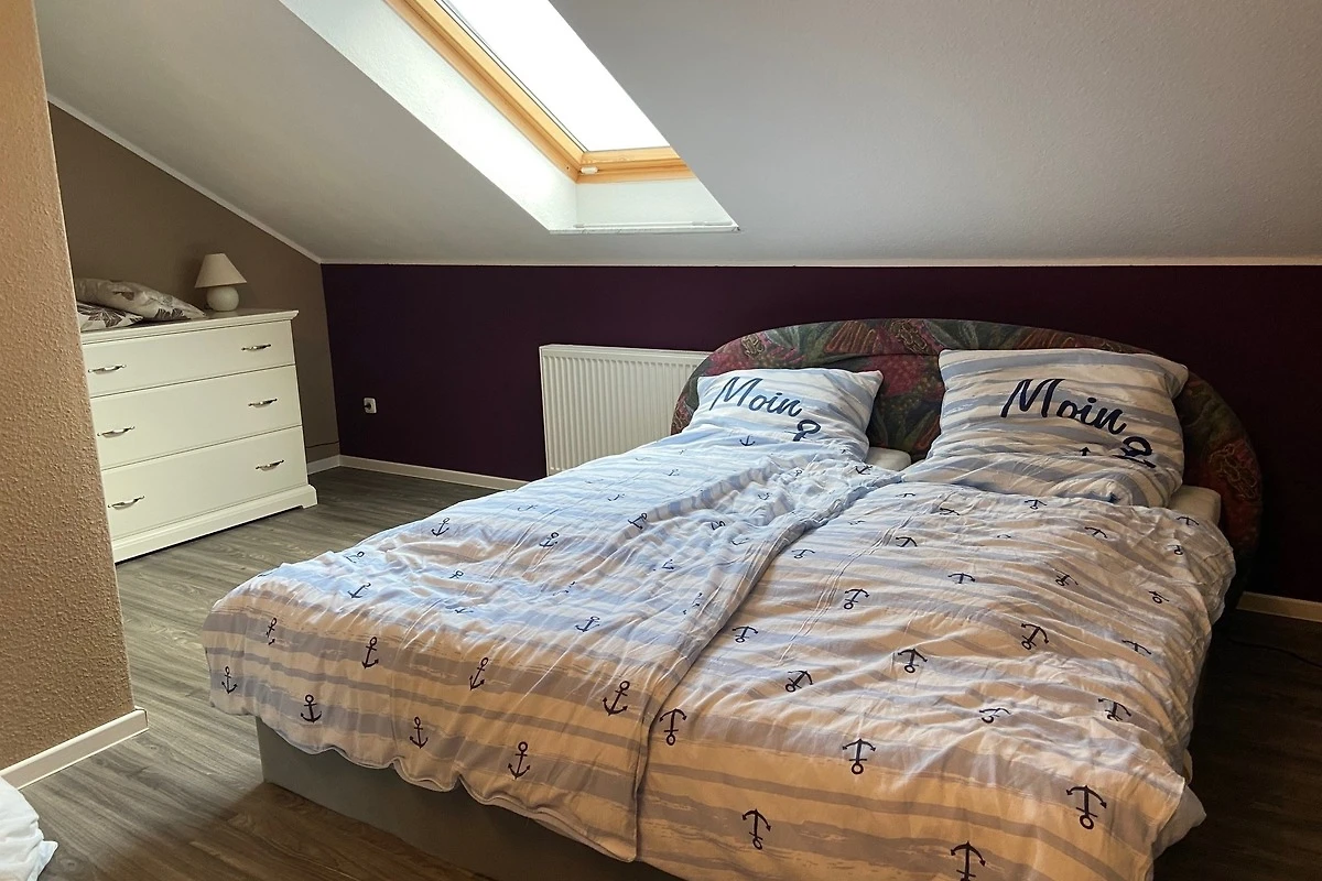 Im Dachgeschoss befindet sich ein viertes Schlafzimmer mit einem Doppelbett (2x90x200) und einer Kommode. Home Office an der Ostsee: Sollten Sie noch ein wenig Arbeit mitbringen steht für Sie im Obergeschoss ein Schreibtisch mit eigenem LAN-Anschluss sowie einem bequemen Schreibtischstuhl bereit. So lässt sich Arbeit und Entspannung am Ostseestrand perfekt miteinander kombinieren.