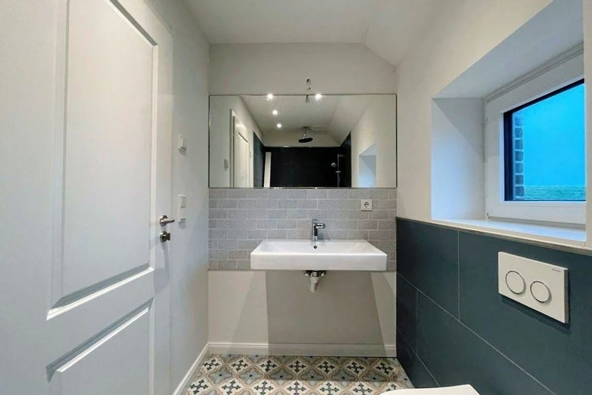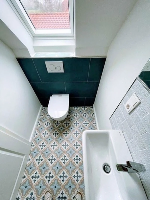 Die Wohnung, eigentlich eine Haushälfte, wurde 2021/22 aufwändig saniert. Die verwendeten Materialien sind hochwertig und geschmackvoll. Einbaumöbel und aufgearbeitete Holzbalken runden das Ambiente ab.