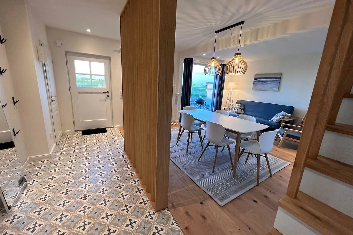 Direkt hinter dem Deich gelegen, bietet es durch seine Lage, etwas ausserhalb des Trubels in einer gewachsenen Nachbarschaft, Ruhe und Entspannung. Der kurze Fussweg zum örtlichen Einzelhandel und zu zahlreichen Restaurants rundet diese Lage ab. Die 3 Kilometer bis zum Hafen Nessmersiel mit seinem Strand sind bequem zu Fuss oder mit dem Rad zu schaffen.