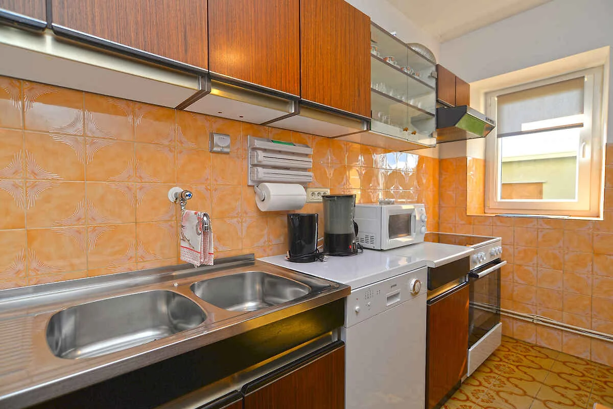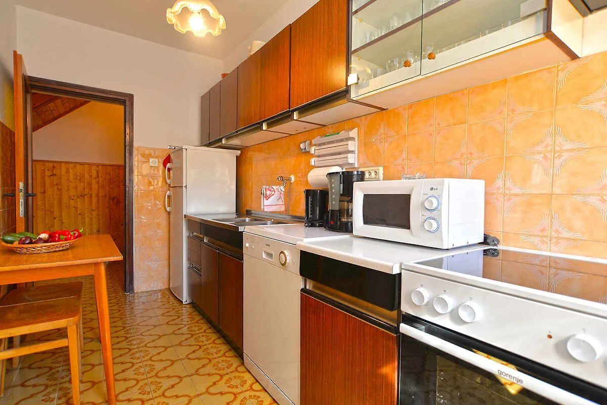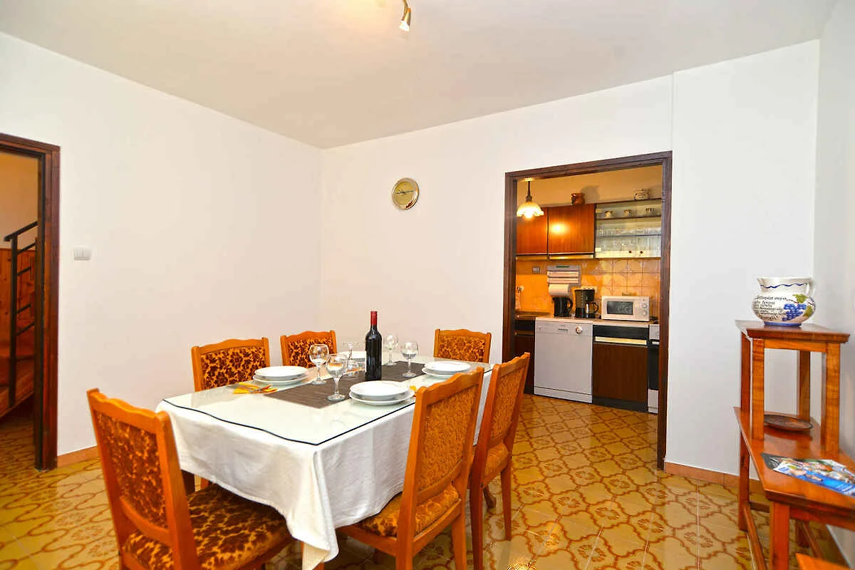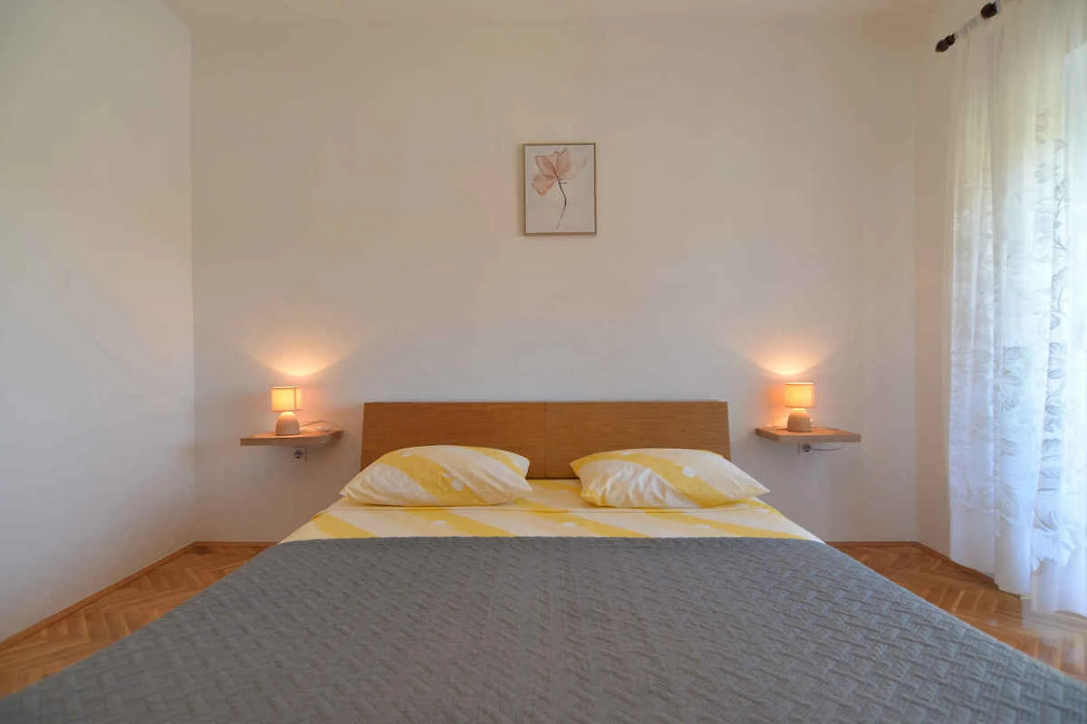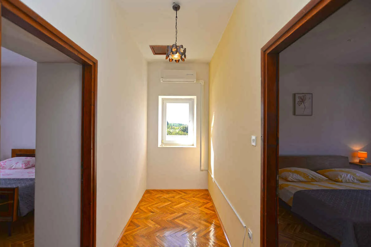 Grandići. Das Ferienhaus befindet sich auf einem 120 qm grossen, geschlossenen Gartengrundstück mit Blumen und Bäumen, von einem Zaun begrenzt. Parkplatz auf dem Grundstück.