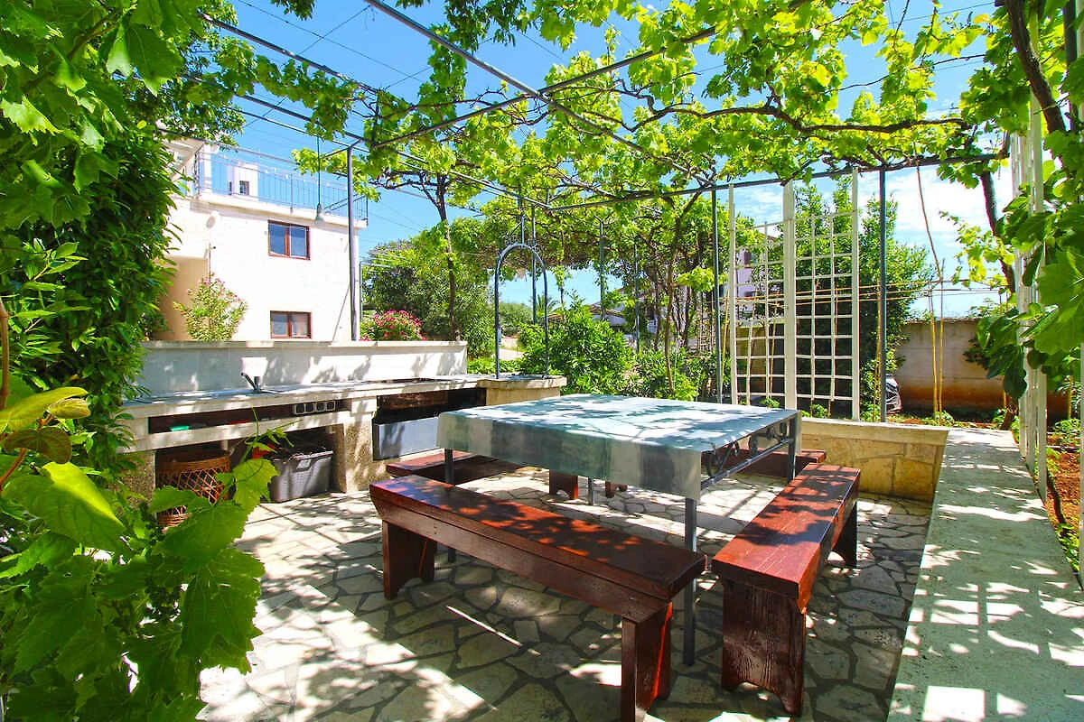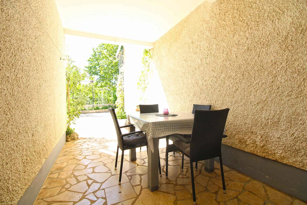 Pješćana Uvala. Die Ferienwohnung befindet sich auf einem 35 qm grossen, geschlossenen Gartengrundstück, von einem Zaun begrenzt. Die Zufahrt erfolgt über einen Weg (asphaltiert). Parkplatz auf dem Grundstück.