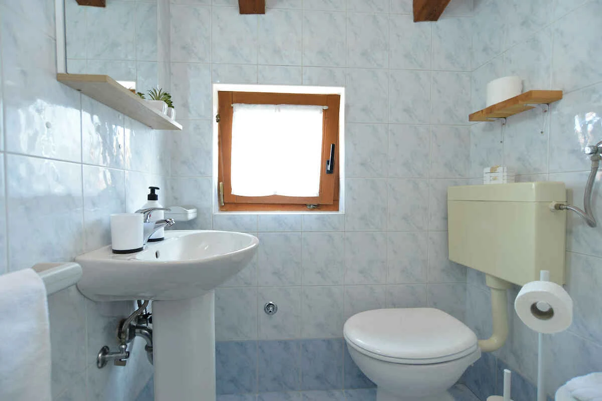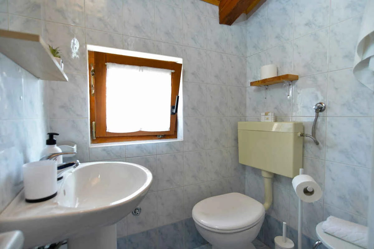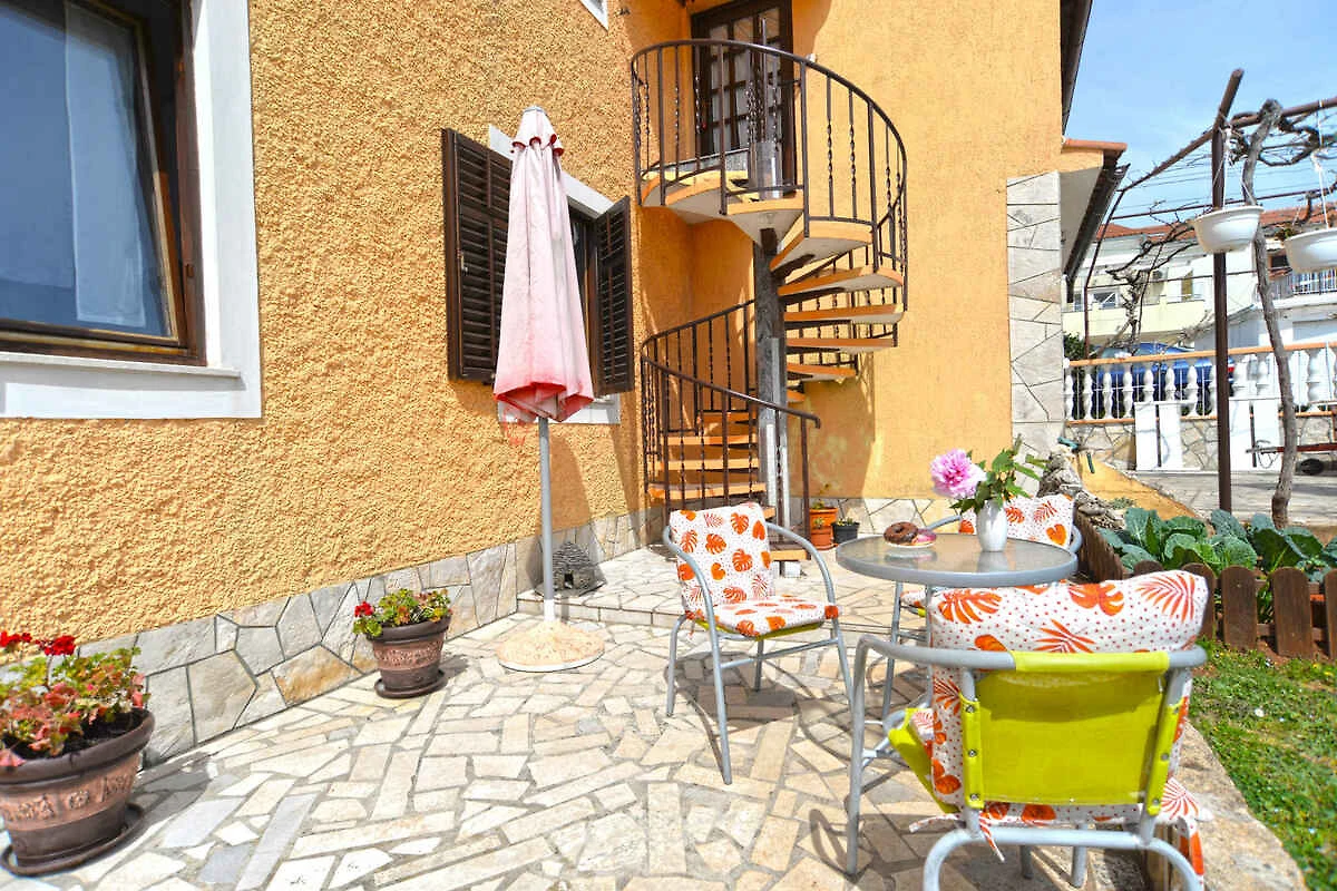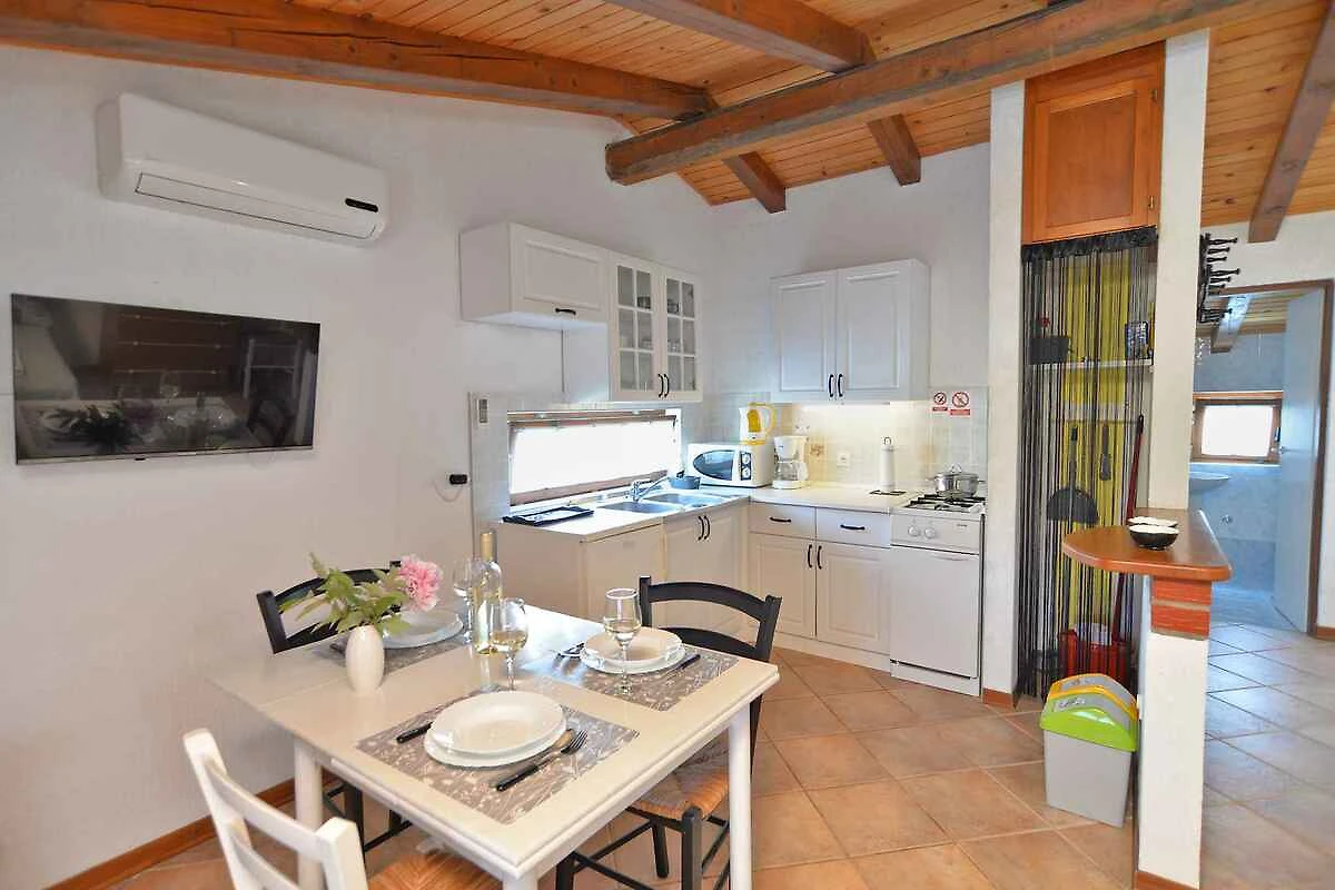 Fažana. Die Ferienwohnung befindet sich auf einem geschlossenen Gartengrundstück mit Wiese, Blumen, Sträuchern und Bäumen, von einem Zaun begrenzt. Der Vermieter wohnt im Haus. Die Zufahrt erfolgt direkt von der Hauptstrasse (asphaltiert). Parkplatz (für 1 Pkw) auf dem Grundstück.