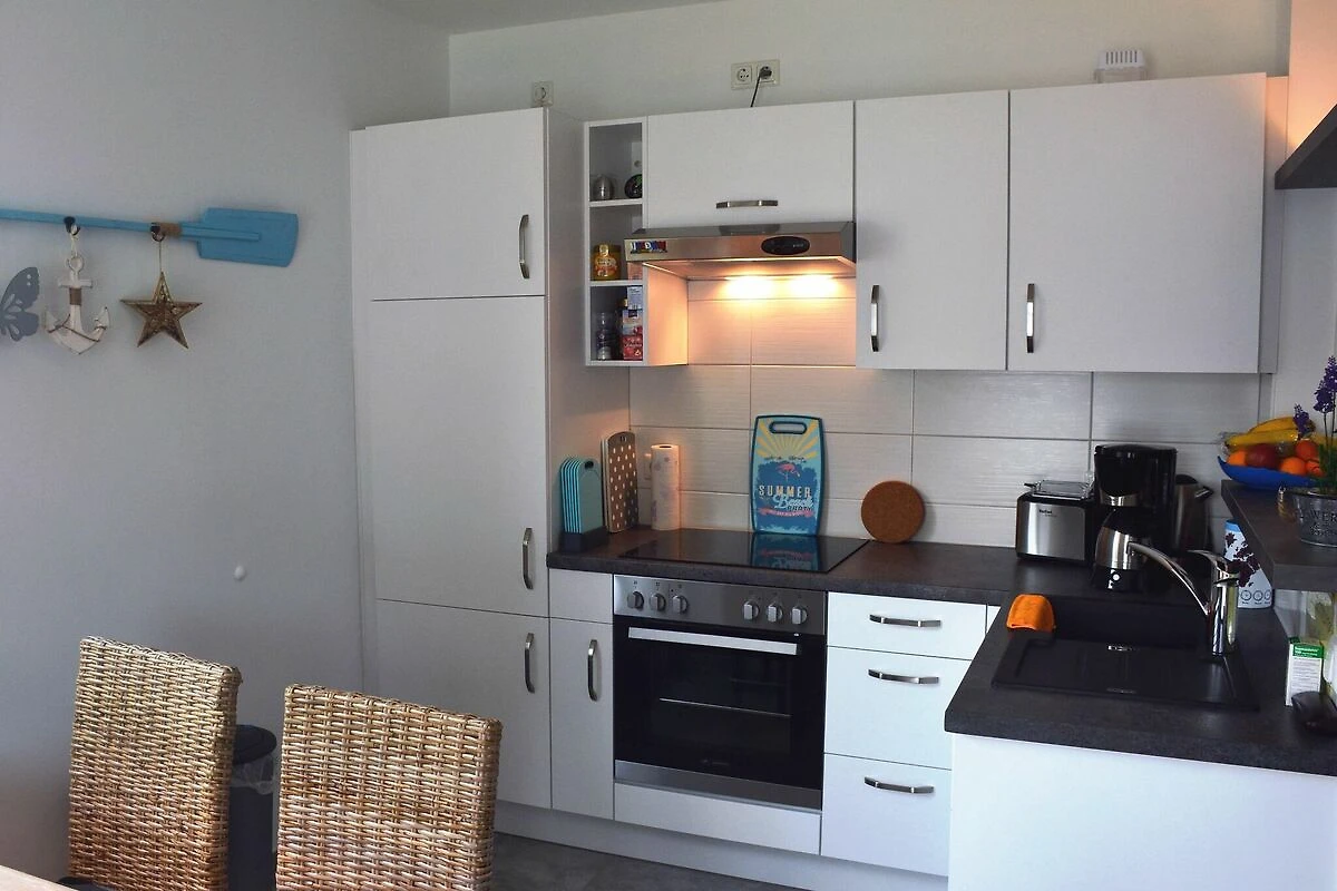 Parterre: (offene Küche(Esstisch(5 Personen), Wasserkocher, Toaster, Kochherd(4 Kochplatten, Ceranfeld), Dunstabzugshaube, Kaffeemaschine, Backofen, Spülmaschine, Kühl-/Gefrierkombination), Wohn/Esszimmer(TV(Satellit), Kaminofen, Radio, Heizung(Fußbodenheizung)), Badezimmer(Dusche, Waschbecken, Toilette))