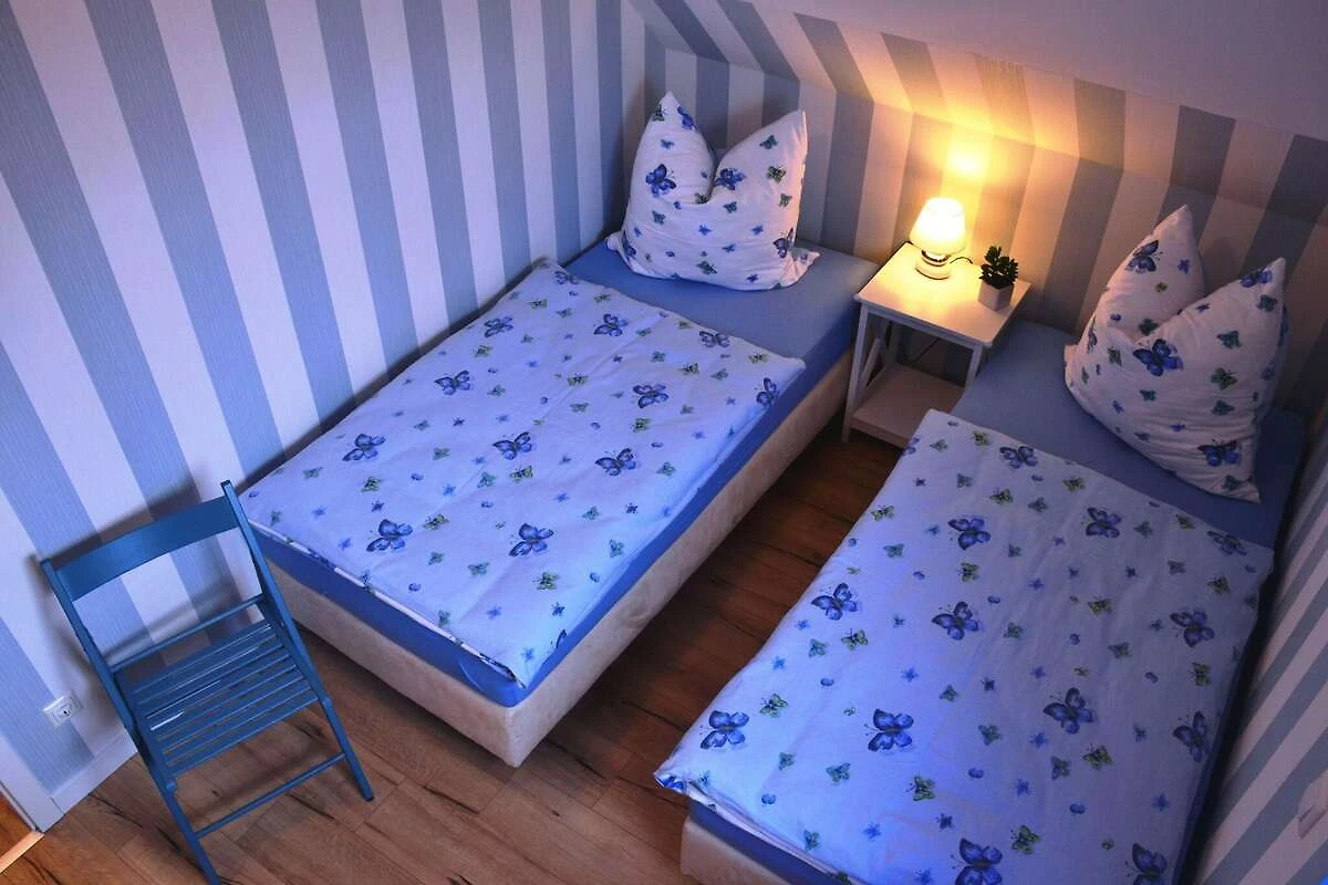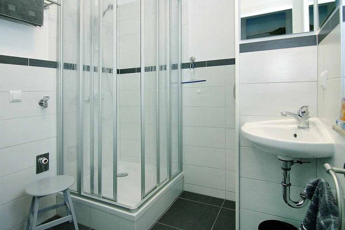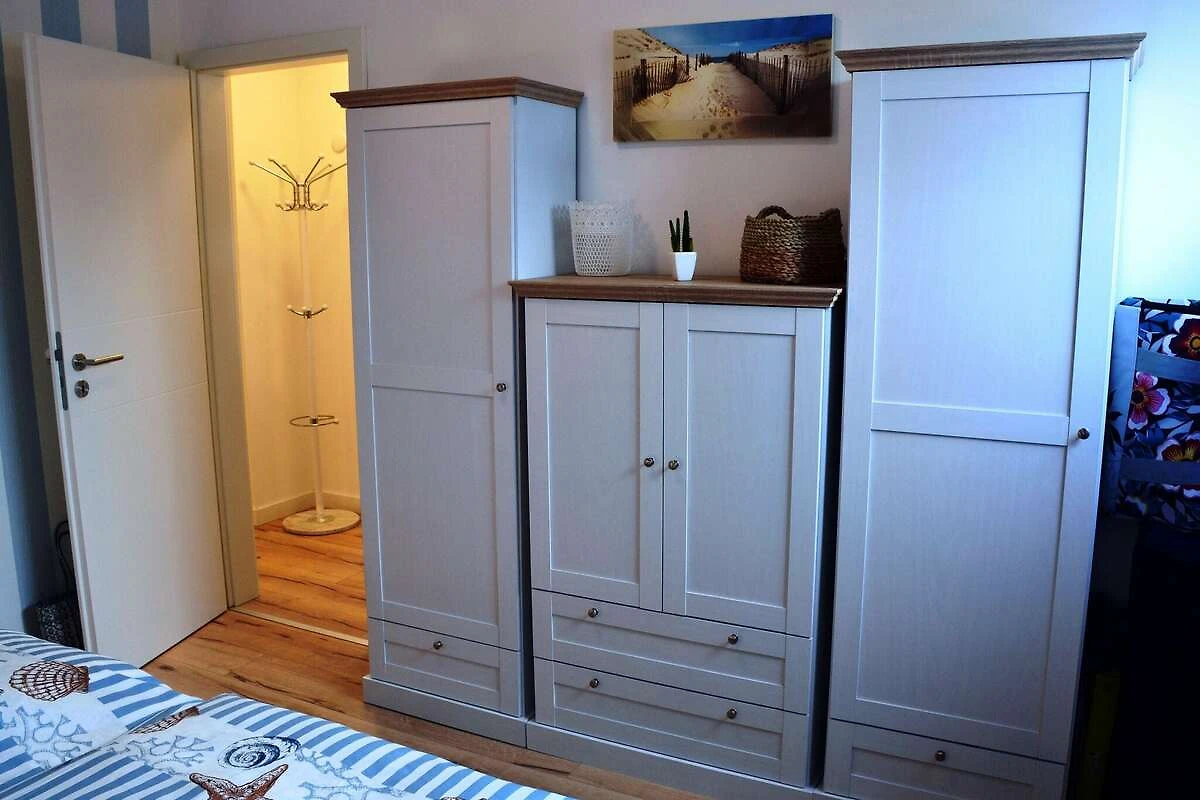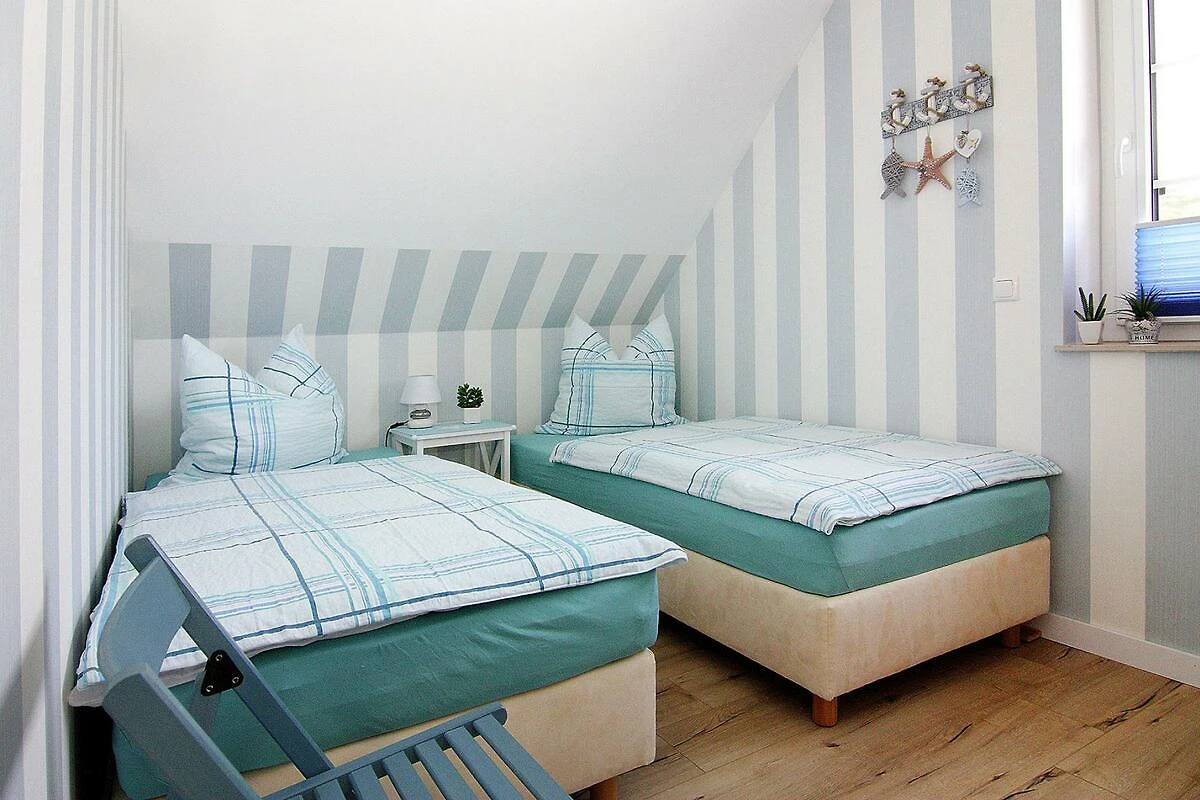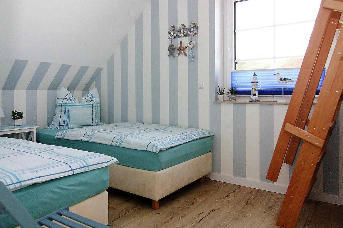 In der 1. Etage: (Schlafzimmer(Doppelbett), Schlafzimmer(Einzelbett, Einzelbett), Badezimmer(Dusche, Waschbecken, Toilette, Föhn))