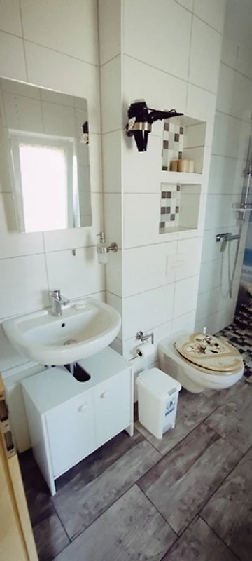 Das Bad verfügt über ein WC, eine Duschkabine und ein Haartrockner ist ebenfalls vorhanden. Handtücher für Ihren persönlichen Bedarf bringen Sie bitte selbst mit.
