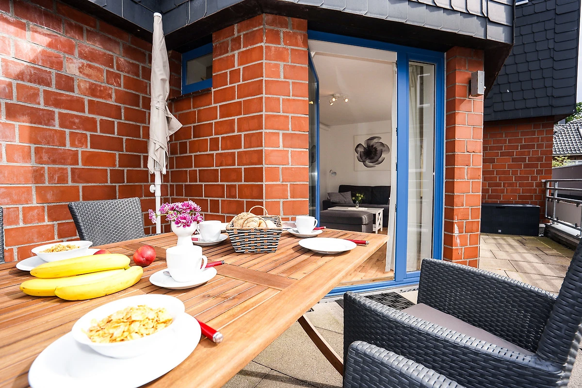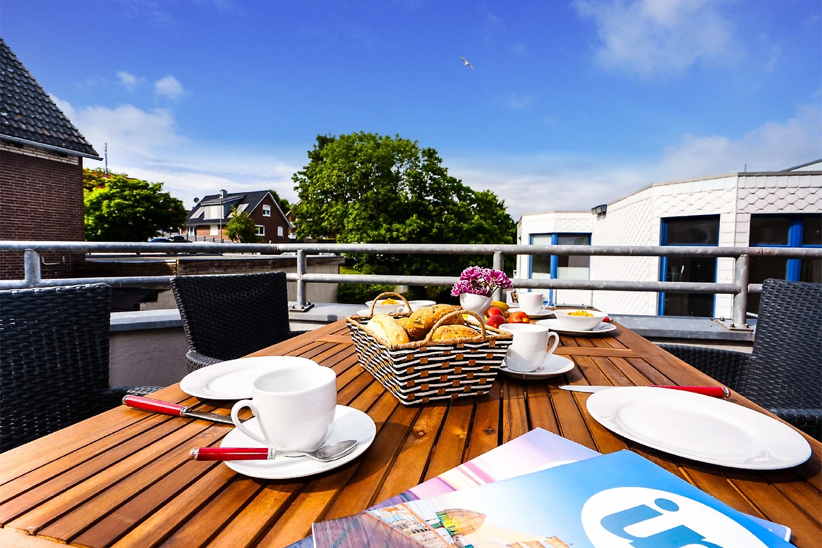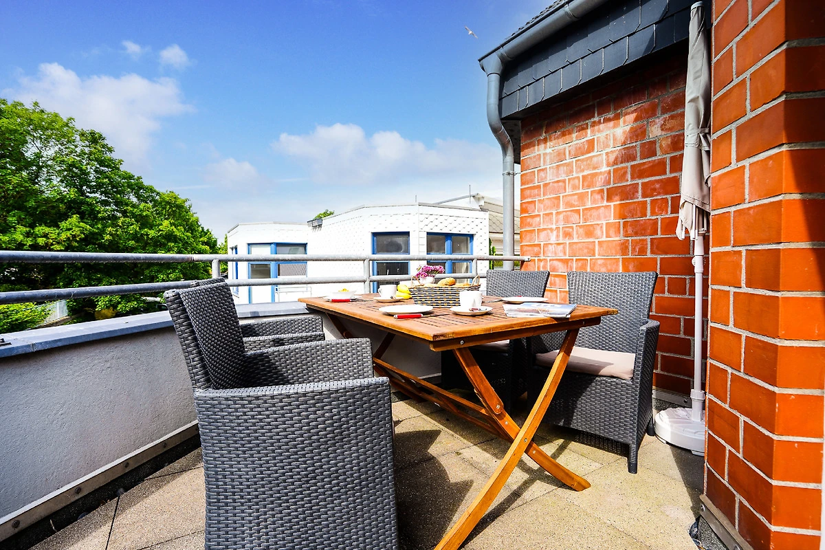 Entspannen Sie nach einem Tag am Strand auf Ihrer eigenen kleinen Dachterrasse.