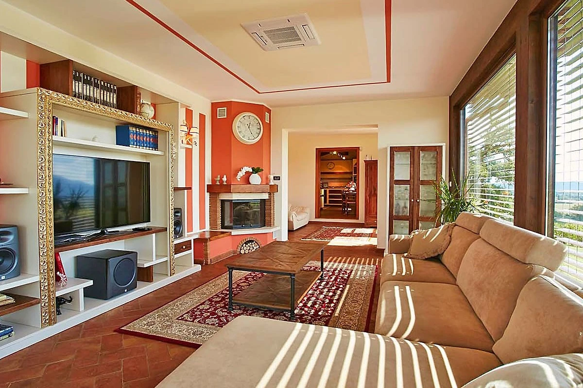 Das luxuriöse Ferienhaus ist von einem 1 Hektar großen Grundstück und von einem schön angelegten Garten mit Palmen und blühenden Büschen umgeben. Sie genießen einen lieblichen 360° Panoramablick über Weinreben und Olivenhaine hinweg bis hin zur Burgruie Montemassi und nach Roccatederighi.