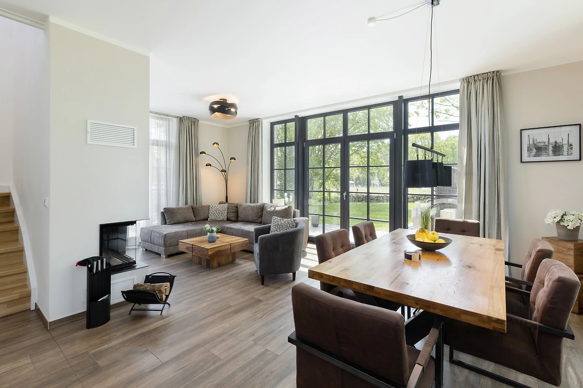 Die moderne, grosszügige Küche ist offen angelegt und mit allem ausgestattet, was man benötigt, um nicht nur den schnellen Snack für zwischendurch, sondern auch das Mehrgangmenü am Abend zubereiten zu können. Grosszügige Fensterfronten, ein komfortabler Esstisch und eine gemütliche Sitzgruppe vor dem Kamin prägen den lichtdurchfluteten Wohnbereich. Und was gibt es Schöneres an kühlen Abenden, als das Flackern von brennenden Holzscheiten im Kamin! Wer die raue Schönheit der Küste in Herbst und Winter liebt, weiss die Wärme und Behaglichkeit eines Kaminfeuers zu schätzen. Denken Sie daher bei Ihrer Buchung am besten gleich daran, Kaminholz für den ersten Abend zu bestellen.