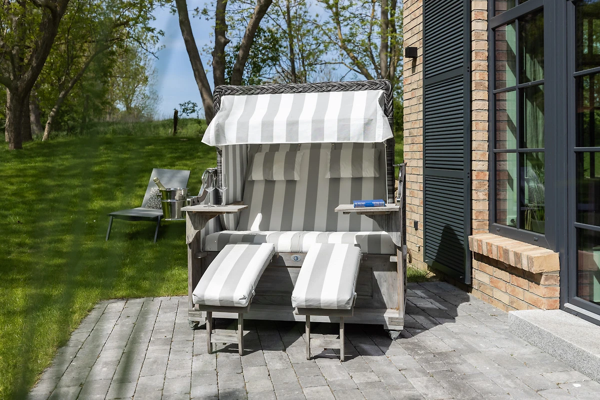 Zum Haus gehört ein eigener Garten mit Terrasse, der mit Gartenmöbeln, einem Strandkorb und einem Sonnenschirm ausgestattet ist - ideal für den Urlaub mit Kindern und/oder Hund! Wir bitten zu berücksichtigen, dass wir einen zweiten Hund nur auf Nachfrage erlauben!