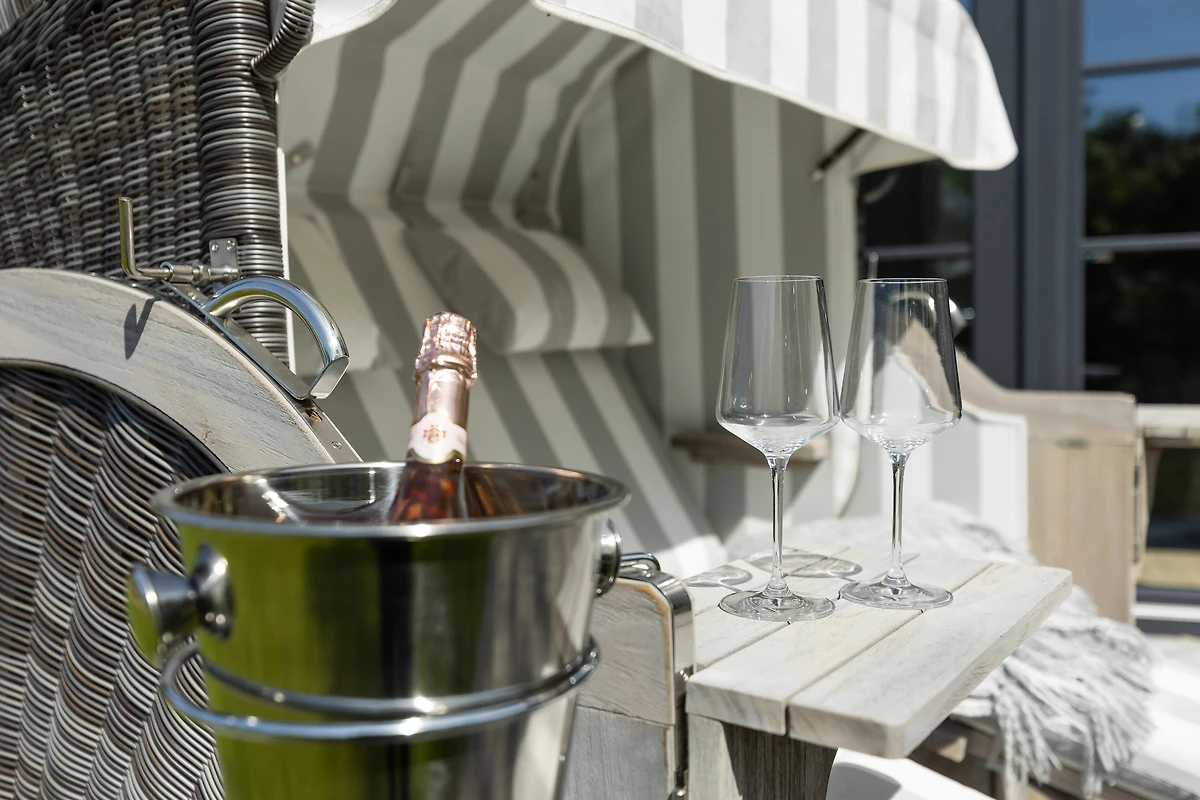 Zum Haus gehört ein eigener Garten mit Terrasse, der mit Gartenmöbeln, einem Strandkorb und einem Sonnenschirm ausgestattet ist - ideal für den Urlaub mit Kindern und/oder Hund! Wir bitten zu berücksichtigen, dass wir einen zweiten Hund nur auf Nachfrage erlauben!
