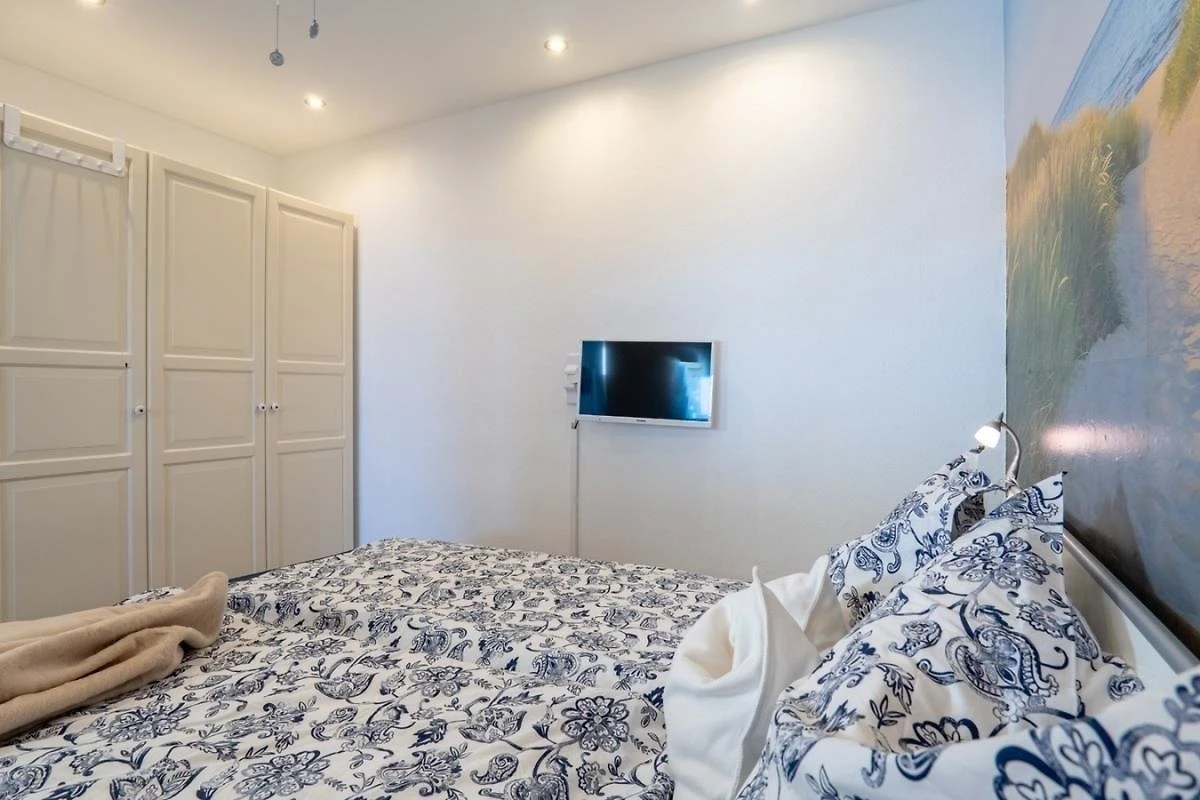Erholen Sie sich in den geschmackvoll eingerichteten Schlafzimmern, die mit einem gemütlichen Doppelbett, einem praktischen Kleiderschrank und einem Flatscreen-TV ausgestattet sind. Für Familien oder Gruppen bietet das zweite Schlafzimmer sogar ein Etagenbett, perfekt für unvergessliche Nächte.
