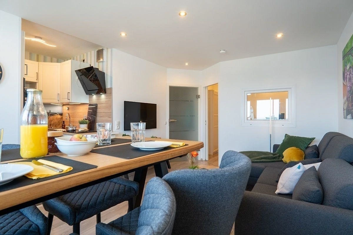 Im Wohnbereich erwarten Sie unterhaltsame Gesellschaftsspiele, eine Bibliothek voller fesselnder Bücher sowie modernste Unterhaltungselektronik wie ein Flatscreen-TV und ein Blu-ray-Player für gemütliche Abende. Die komplett ausgestattete Küche lässt keine Wünsche offen - ob Sie ein köstliches Frühstück zubereiten oder ein mehrgängiges Abendessen zaubern möchten, hier finden Sie alles, was Sie brauchen. Geniessen Sie den Luxus eines eigenen Geschirrspülers, einer Kaffeemaschine, einem Toaster und vielem mehr!