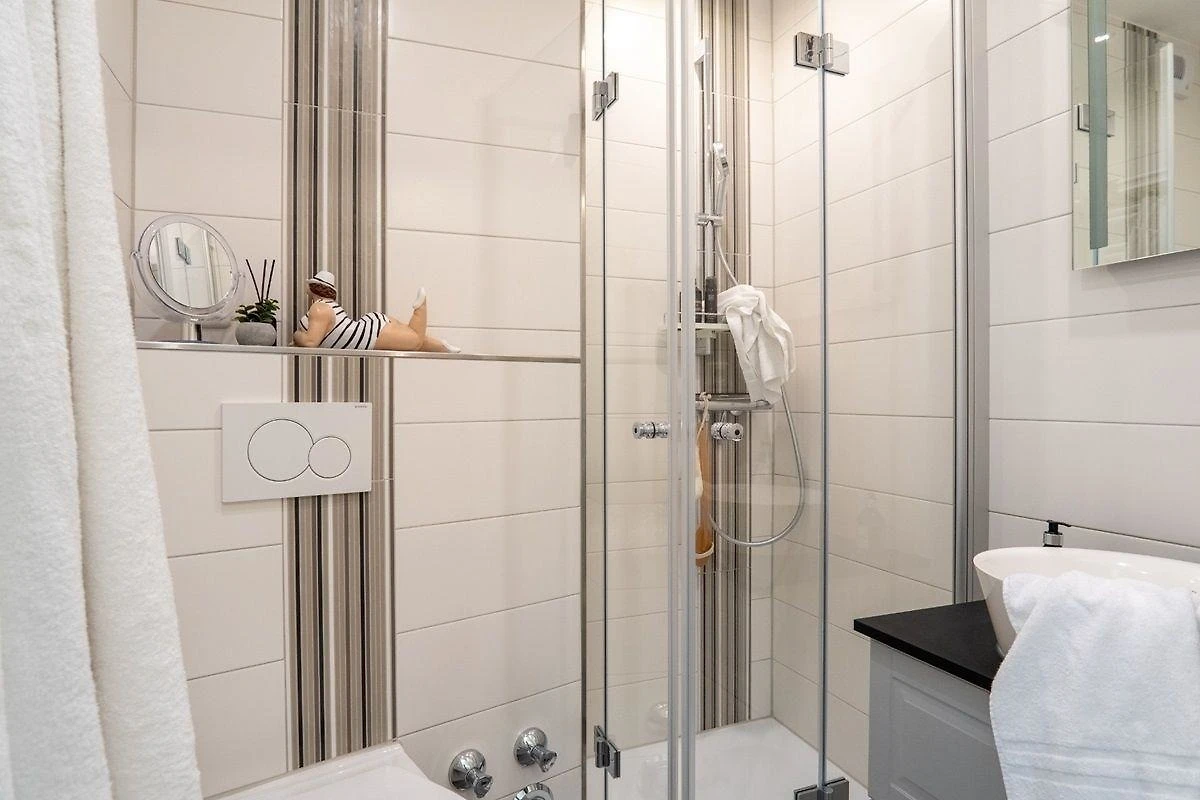 In den Badezimmern erwartet Sie ein Hauch von Luxus mit einem Föhn, einem Kosmetikspiegel und einer entspannenden Dusche.