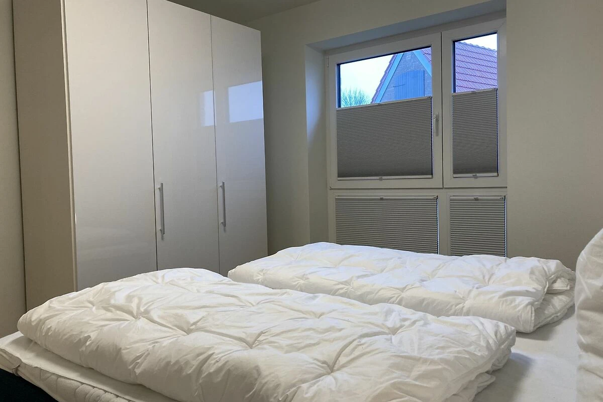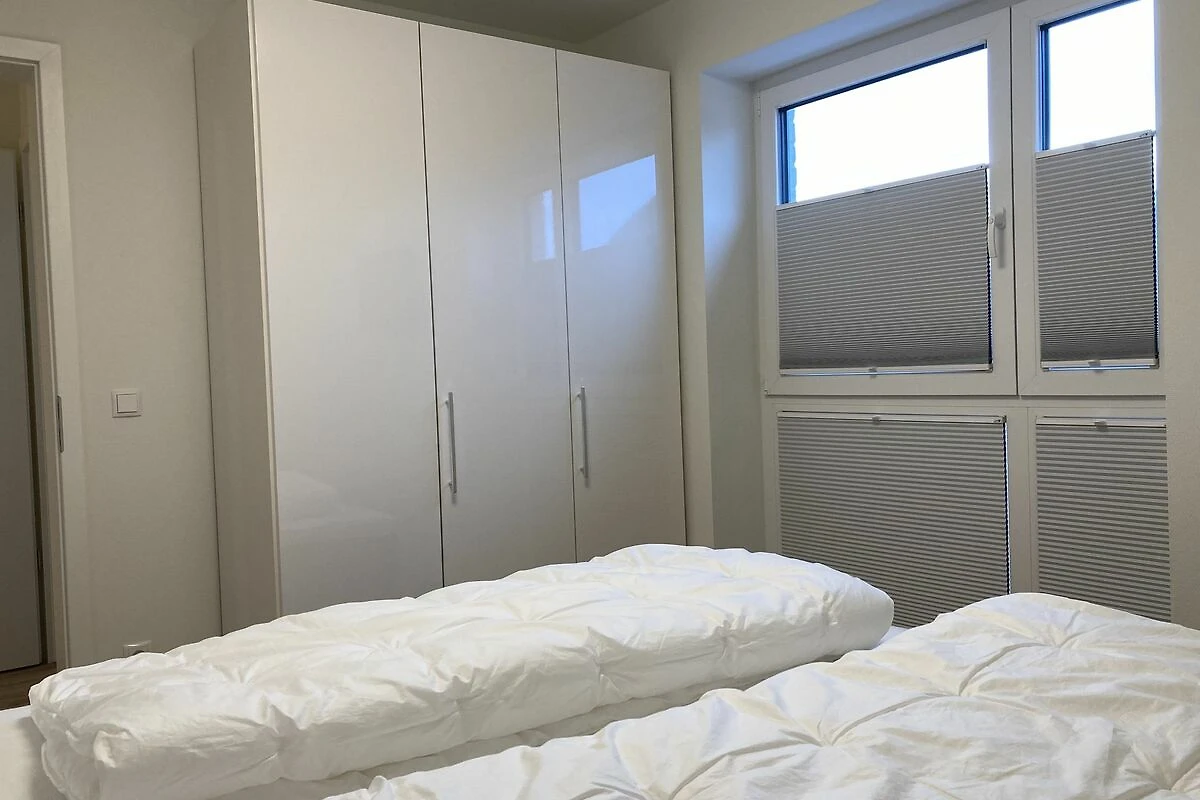 - Schlafzimmer mit hochwertigen Boxspringbett (durchgängige Matratze 180 cm x 200 cm) und Kleiderschrank