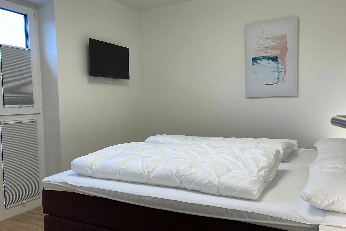 - Schlafzimmer mit hochwertigen Boxspringbett (durchgängige Matratze 180 cm x 200 cm) Kleiderschrank und TV