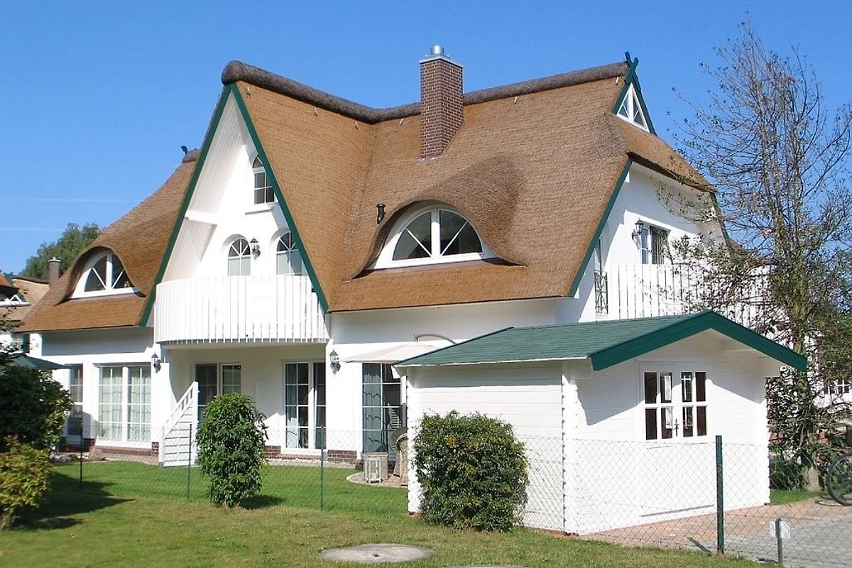 Unterm Reetdach liegt unsere schöne komfortable Maisonette-Ferienwohnung im 1. OG, strandnah (ca. 300m) in ruhiger Lage. Zwei Parkplätze stehen Ihnen direkt am Haus zur Verfügung. Im Hof Sauna und Ruheraum in schwedischen Kota-Hütten. Der helle, modern und freundlich eingerichtete Wohnbereich, mit Flachbild-TV, Kamin und angrenzendem Balkon ermöglicht einen erholsamen Urlaub. Die voll ausgestattete Küche mit Essbereich bietet neben der Filterkaffee- und Senseomaschine noch einen Nespresso-Kaffevollautomaten. Zwei gemütlich eingerichtete Doppelzimmer mit Flachbild-TV verfügen über genug Schrankraum und Platz, z. B. für ein Kinderreisebett. Das obere Zimmer direkt mit kleinem Bad (WC/Waschbecken). Das zweite grössere Bad mit Dusche, WC und Waschbecken ist voll ausgestattet, beide in Marmor. Besonderen KOmfort garantieren die Fussbodenheizung, Müc kenschutz an den Fenstern und Sonnenschutz am Dachfenster. Waschmaschinen- und Trocknerbenutzung gegen geringe Gebühr. Fahrradverleih direkt gegenüber. WLAN Anschluss vorhanden