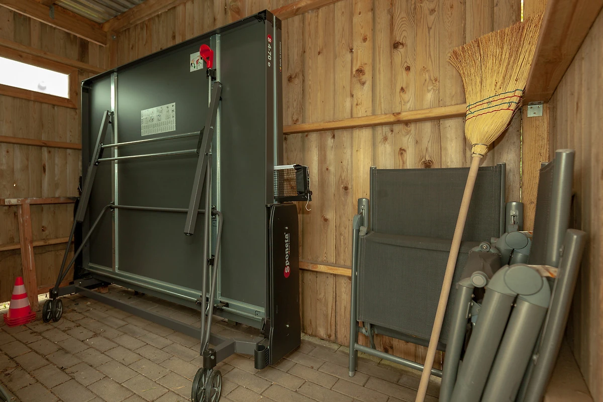 eine Tischtennisplatte und Platz für Ihre eigenen Fahrräder.