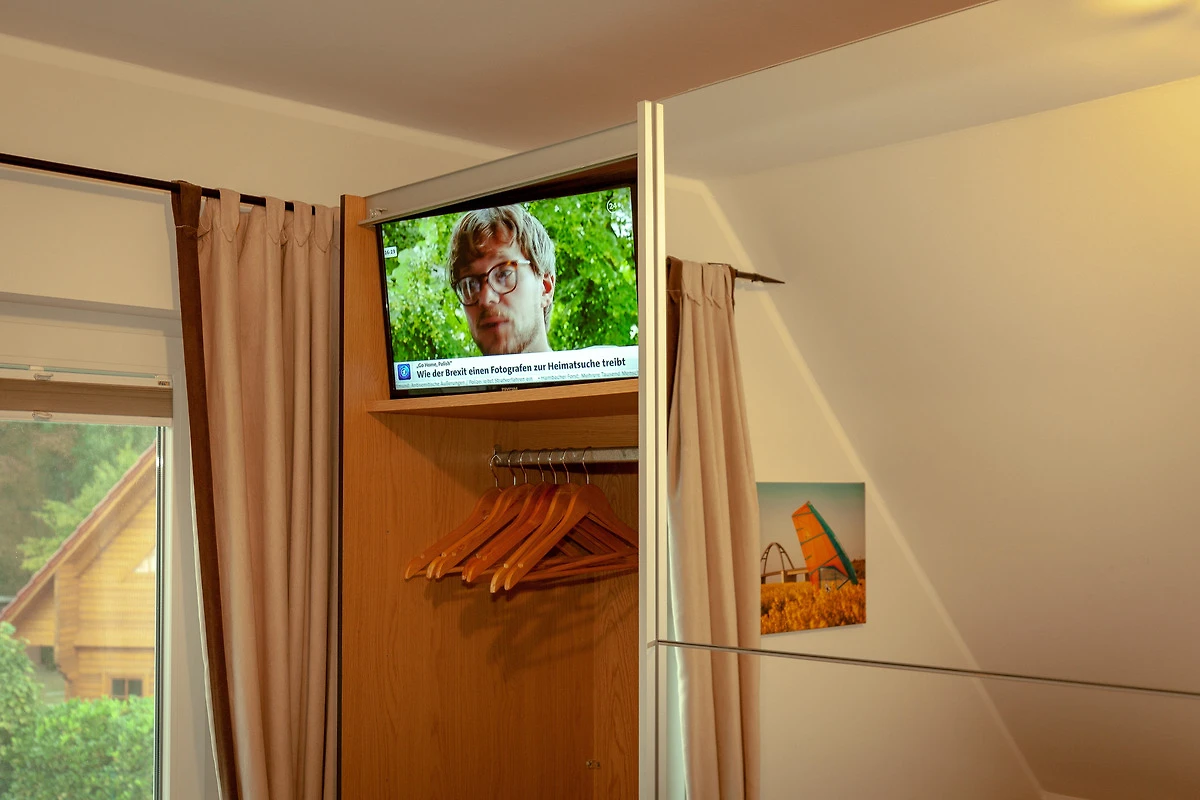 Kleiderschrank eingerichtet - zwei sogar mit TV und integriertem DVD-Player.