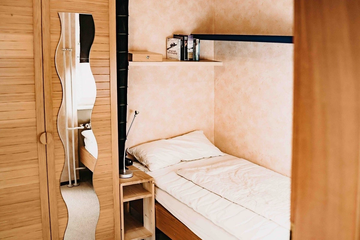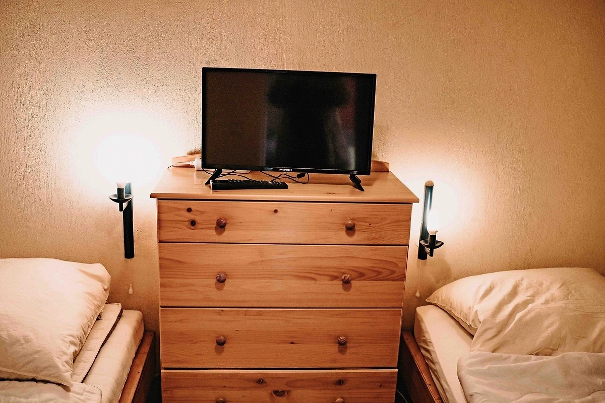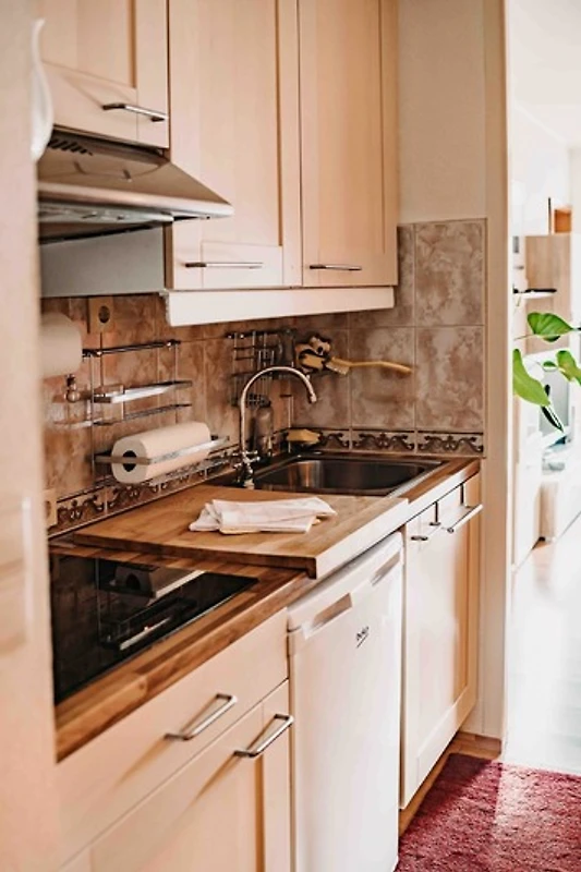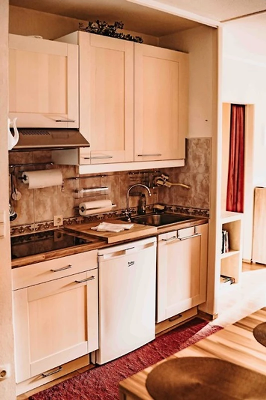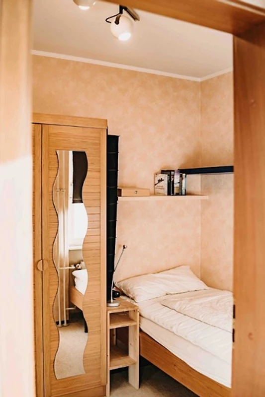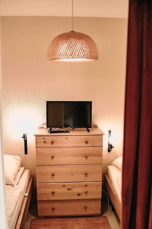 Die Ferienwohnung bietet ein komfortables und modernes Ambiente, ideal für einen entspannten Aufenthalt. Sie verfügt über zwei Schlafzimmer mit insgesamt vier Einzelbetten, die Platz für bis zu vier Personen bieten. Eine offene Küche ist mit einem Elektro- und Gasherd, Mikrowelle, Kühlschrank, Wasserkocher, Toaster und Kaffeemaschine ausgestattet. Für den gemütlichen Genuss stehen Geschirr und Besteck bereit.