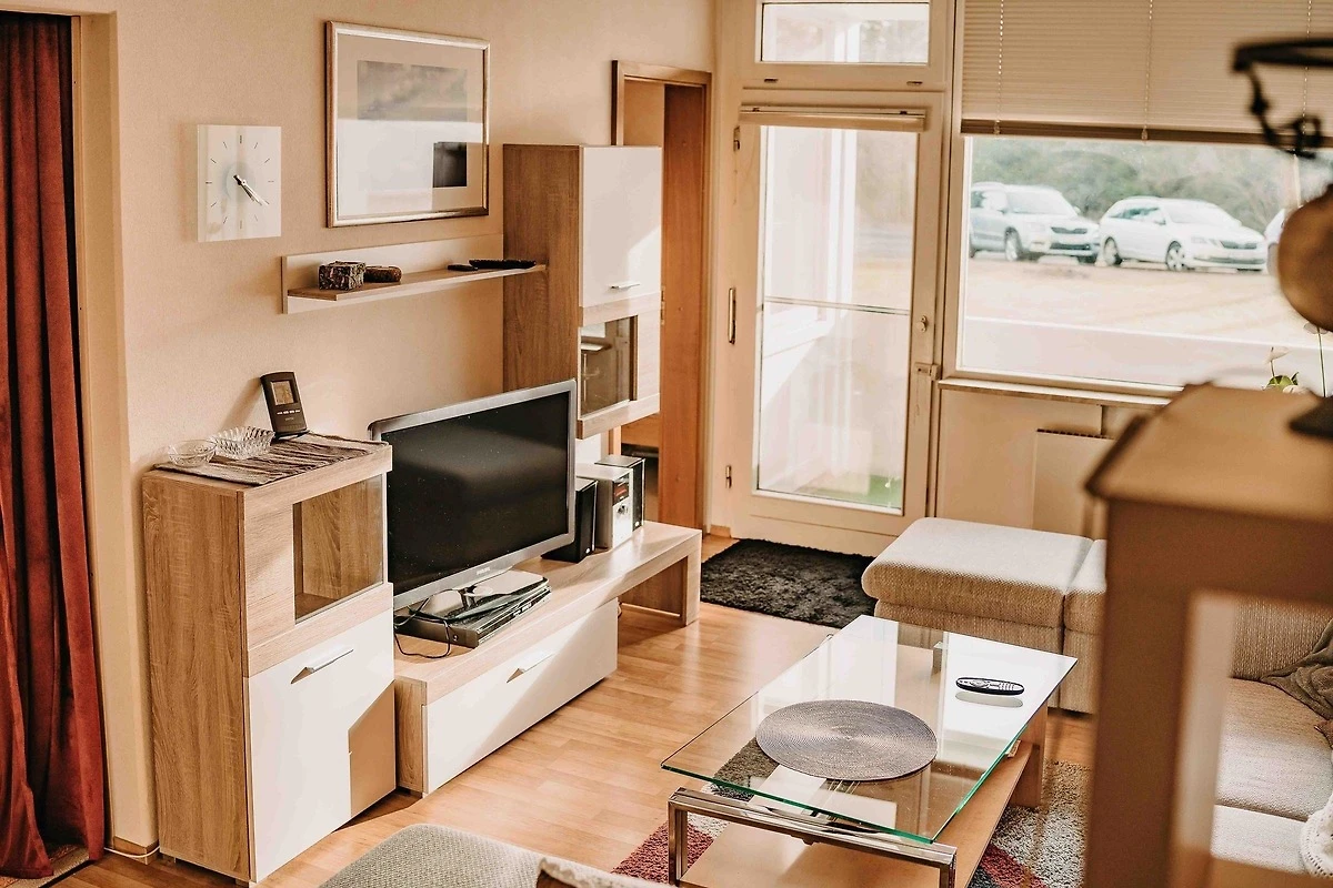 Die charmante Dorfmitte mit Restaurants und Geschäften ist in etwa 800 Metern zu finden, wodurch eine abwechslungsreiche Freizeitgestaltung ermöglicht wird. Die naturnahe Lage der Wohnung lädt zu erholsamen Spaziergängen und Erkundungen der umliegenden Wälder ein. Die Anreise erfolgt bequem mit dem Auto, und öffentliche Verkehrsmittel sind ebenfalls in der Nähe. Diese Lage vereint Ruhe und Erholung mit einer Vielzahl von Aktivitäten für jeden Geschmack.