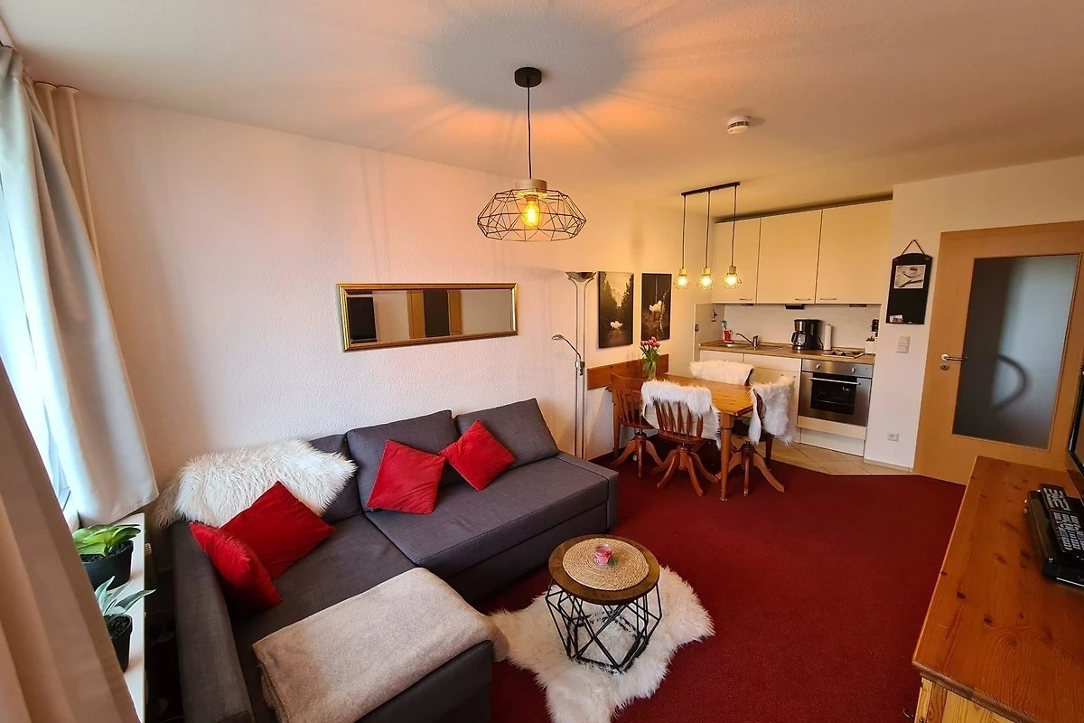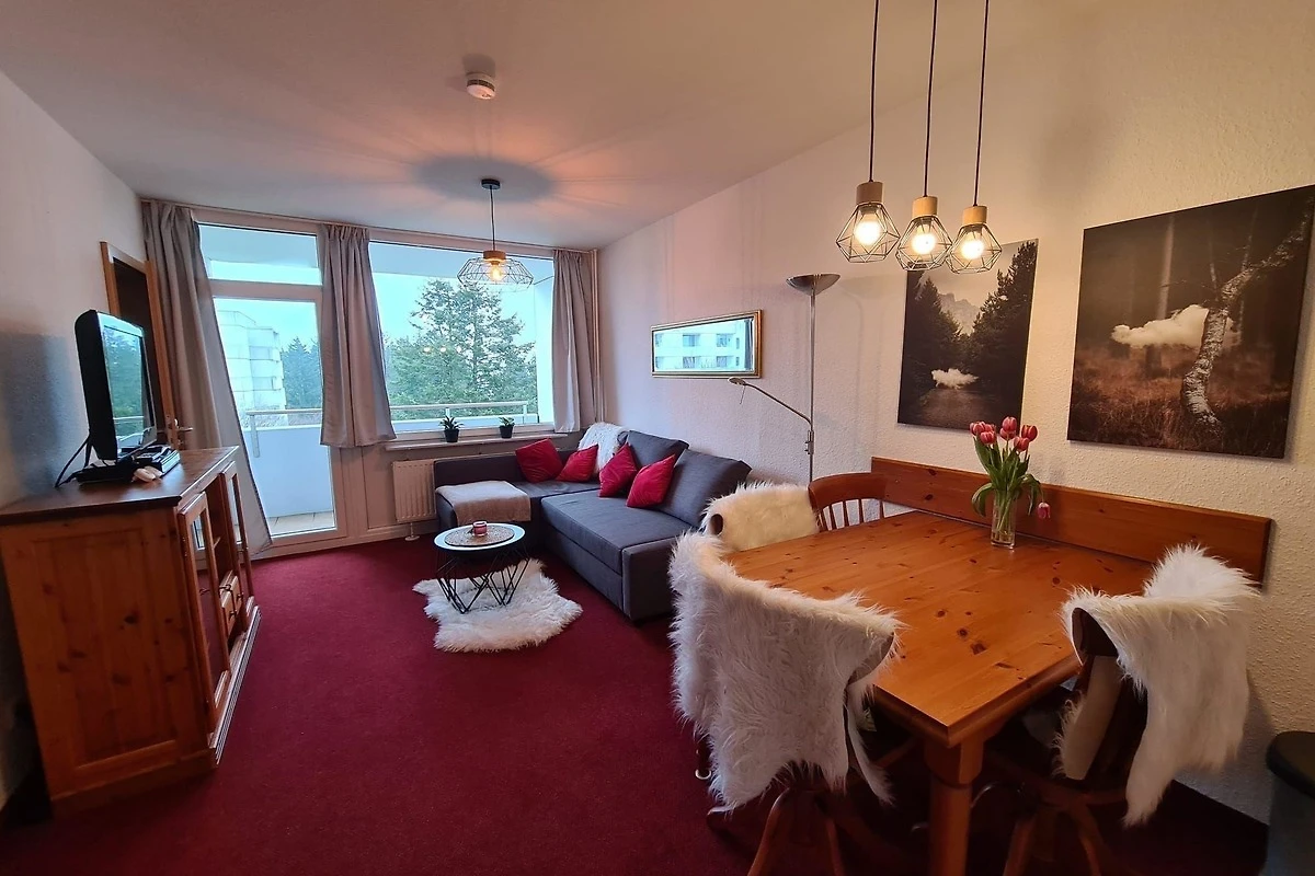 Die Ferienwohnung liegt in einer ruhigen Umgebung in Hahnenklee, einem malerischen Dorf im Oberharz. Die Lage bietet optimalen Zugang zu zahlreichen Freizeitmöglichkeiten und Sehenswürdigkeiten. Der nächste Skilift ist nur etwa 1 Kilometer entfernt, ideal für Wintersportliebhaber. Wanderfreunde finden gut ausgeschilderte Wanderwege in unmittelbarer Nähe, viele davon beginnen bereits in einem Abstand von etwa 500 Metern. Der malerische Bocksberg, bekannt für seine beeindruckenden Aussichten, ist in rund 2 Kilometern erreichbar. Auch das Dorfzentrum mit seinen charmanten Geschäften und Restaurants befindet sich nur 1,5 Kilometer entfernt. Die Ferienwohnung selbst ist in der 4. Etage eines gepflegten Hauses gelegen, das bequem mit dem Fahrstuhl zu erreichen ist, und der Eingang der Wohnung befindet sich in einem separat abgeschlossenen Flur des Hauses.