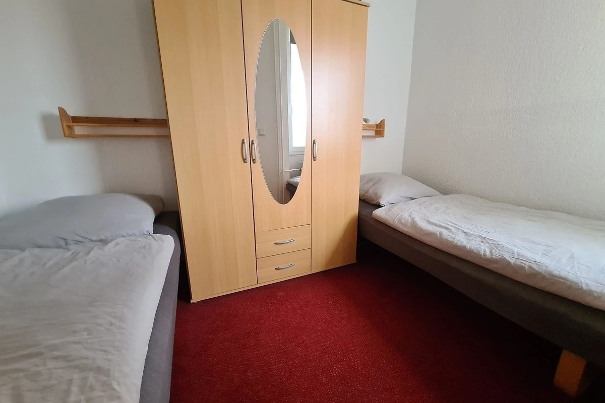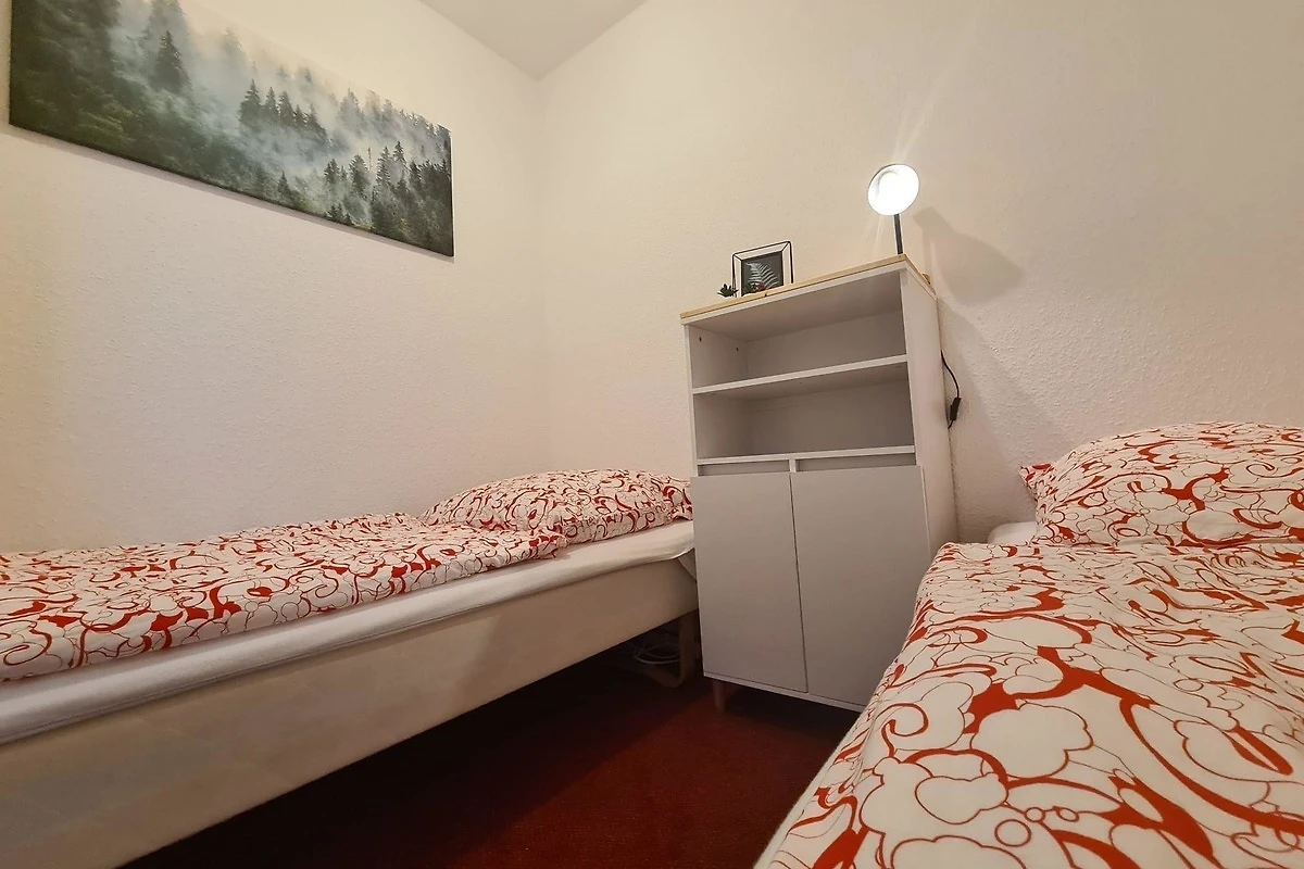 Die Ferienwohnung bietet eine einladende und komfortable Unterkunft für bis zu vier Personen. Sie verfügt über zwei helle Schlafzimmer mit jeweils zwei Einzelbetten, die ausreichend Platz und Privatsphäre bieten. Der offene Küchenbereich ist mit modernen Geräten ausgestattet, darunter ein Elektro- und Gasherd, ein Backofen, ein Kühlschrank sowie eine Kaffeemaschine und ein Toaster, um den Aufenthalt so angenehm wie möglich zu gestalten. Das Duschbad ist mit einem Haartrockner ausgestattet. Im Wohnbereich erwartet die Gäste eine gemütliche Atmosphäre mit einem Sofa, einem Esstisch und einem Fernseher, ergänzt durch eine HiFi-Anlage für entspannte Abende. Internet mit WLAN ist ebenfalls verfügbar. Für zusätzlichen Komfort sorgen ein Fahrstuhl und ein Parkplatz. Die Ferienwohnung ist ideal für Familien oder Freunde, die eine erholsame Zeit verbringen möchten.