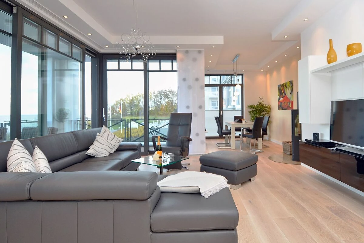 Der 21 qm grosse, nach Osten ausgerichtete Balkon, den man vom Wohnbereich aus betreten kann, ist mit ausgesuchten, bequemen Balkonmöbeln ausgestattet und sorgt für unvergessliche Urlaubsmomente auf der Insel Rügen.