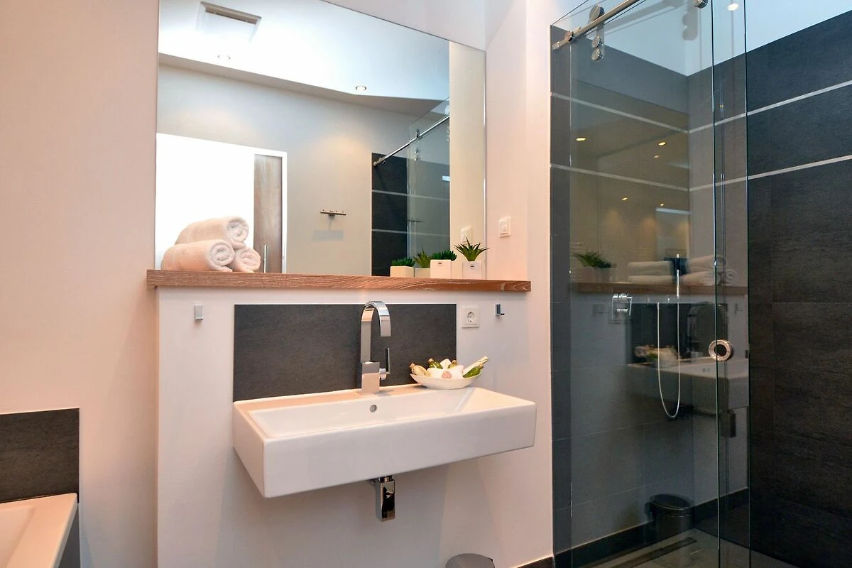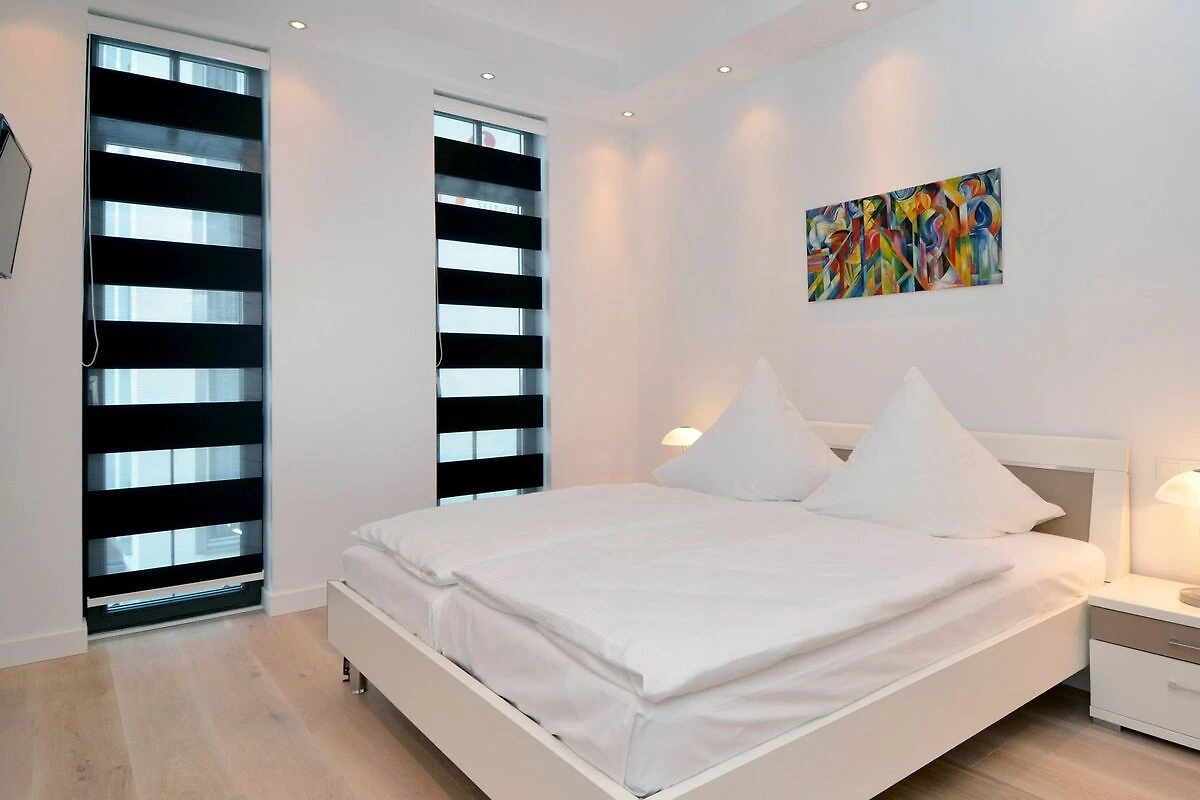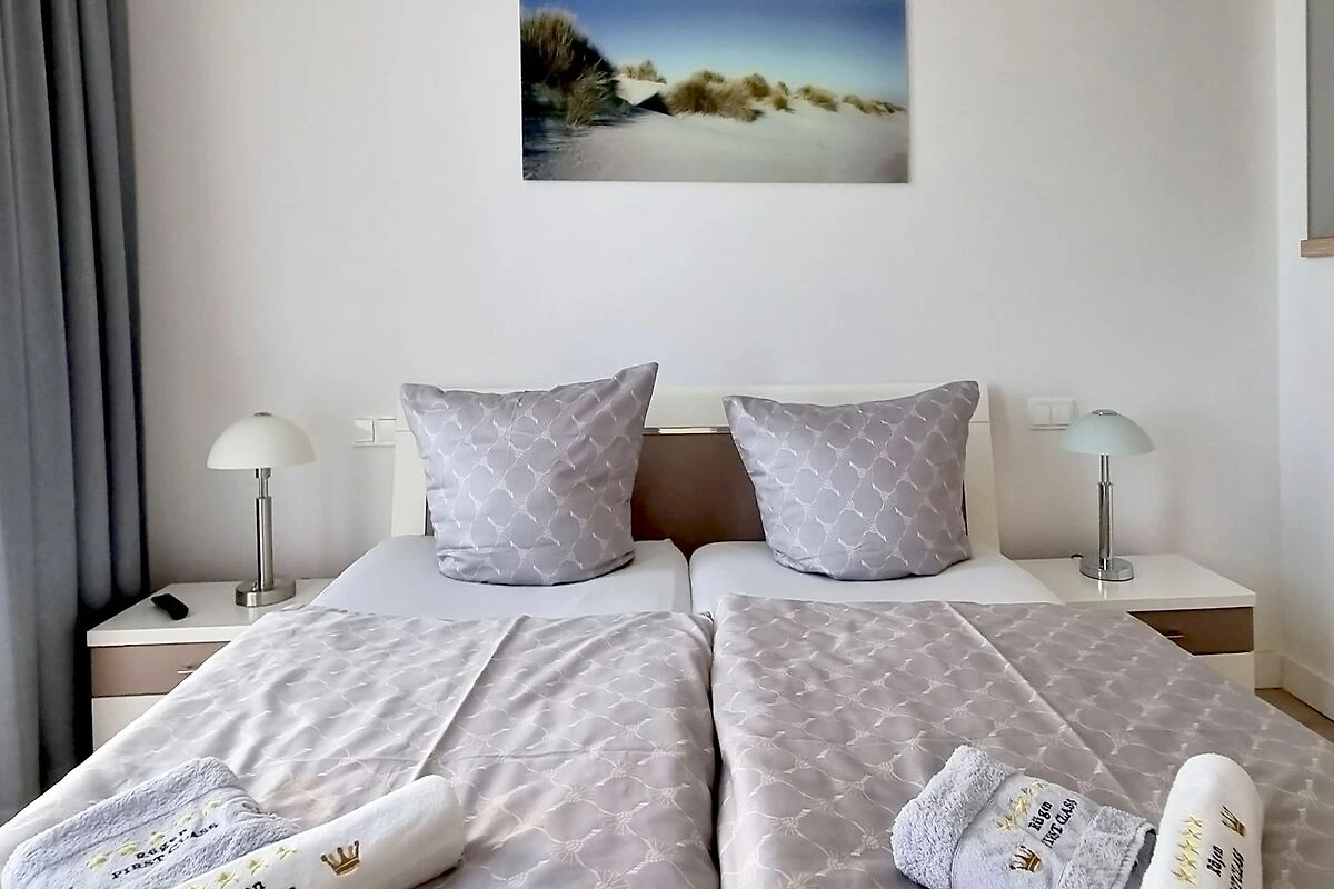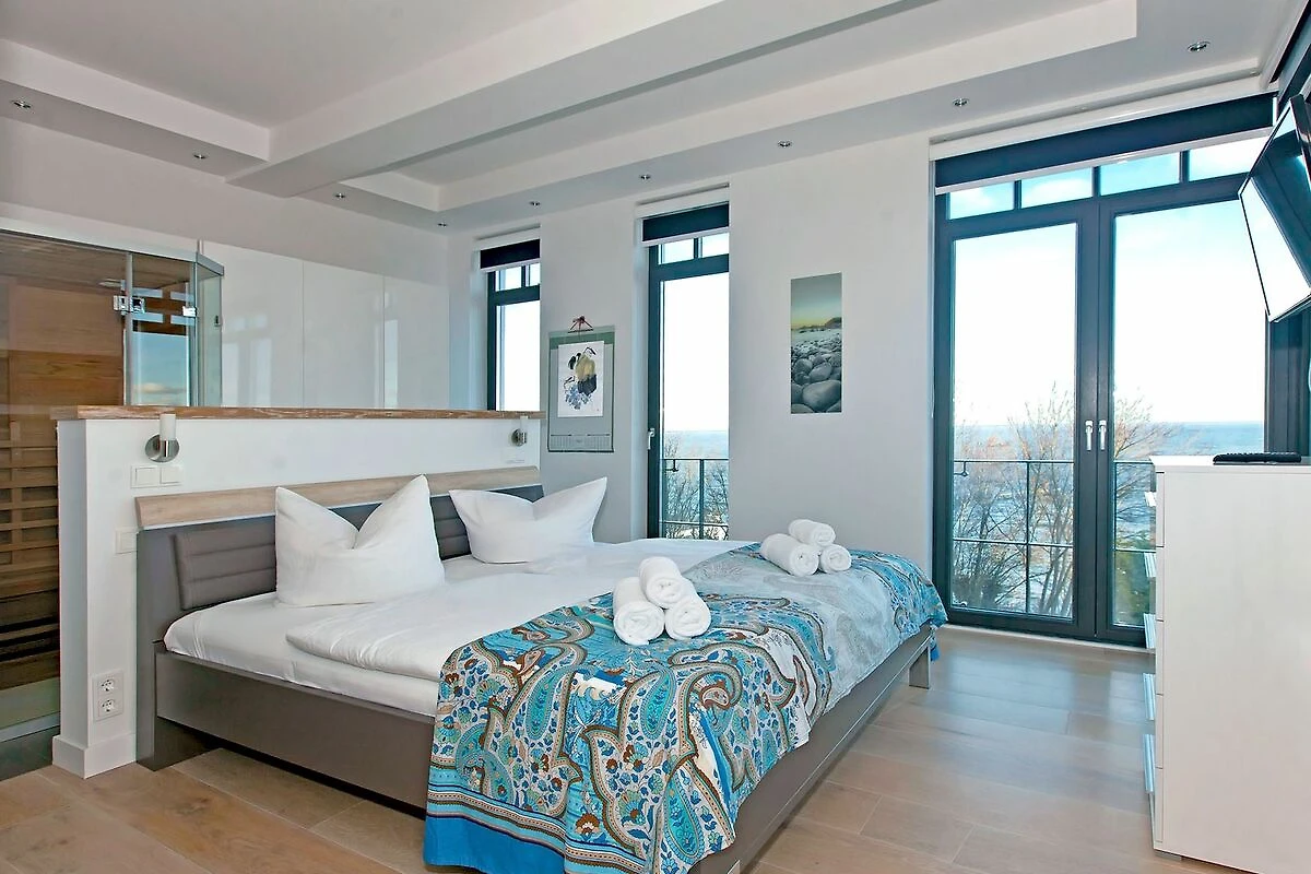Beide Schlafzimmer - eines davon ebenfalls mit freiem Meerblick im Herbst/Winter - sind komfortabel ausgestattet und verfügen je über einen LCD-Fernseher. Ganz bequem gelangt man von den Schlafzimmern in das jeweils dazu gehörige Badezimmer. Beide modernen Duschbäder sind barrierefrei; eines ist zusätzlich mit einer Badewanne ausgestattet. Für private Wellnessfreuden steht Ihnen eine moderne Infrarotsauna zur Verfügung.