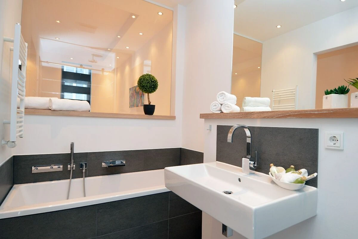 Ein Telefon für Telefonate in das deutsche Festnetz und ein DSL-W-LAN-Internetzugang stehen Ihnen kostenfrei zur Verfügung. Ihr PKW-Stellplatz steht sicher in der Tiefgarage, von wo aus Sie bequem per Lift direkt vor die Eingangstür zur Suite gelangen.