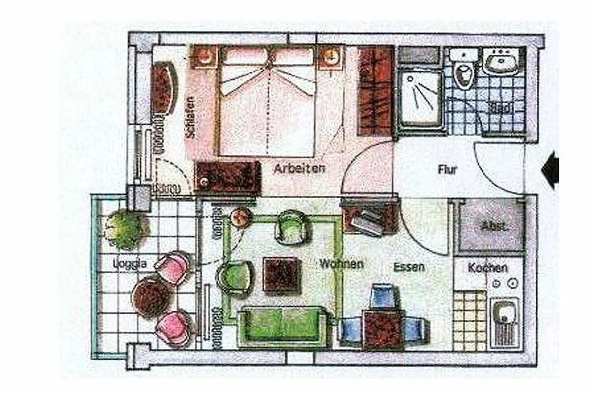 Es begrüsst Sie im gemütlichen Wohnbereich mit dem vorgelagerten Balkon mit einer integrierten Küche nebst Ess-Theke. Für den guten Start in Ihren Urlaubstag sorgt ein entspanntes Frühstück mit frischen Brötchen vom Bäcker nebenan, krossem Toastbrot und duftendem, aromatischen Kaffee - je nach Ihrem Geschmack aus der Cafissimo Kapselmaschine oder aus der Filterkaffeemaschine. Oder möchten Sie Ihren Lieblingstee aufbrühen? Dafür stehen Ihnen ein Wasserkocher und eine Teekanne zur Verfügung. Nutzen Sie die Mikrowelle, den Kühlschrank mit Gefrierfach und die zahlreichen Küchenutensilien für die Kreation Ihrer Mahlzeiten.