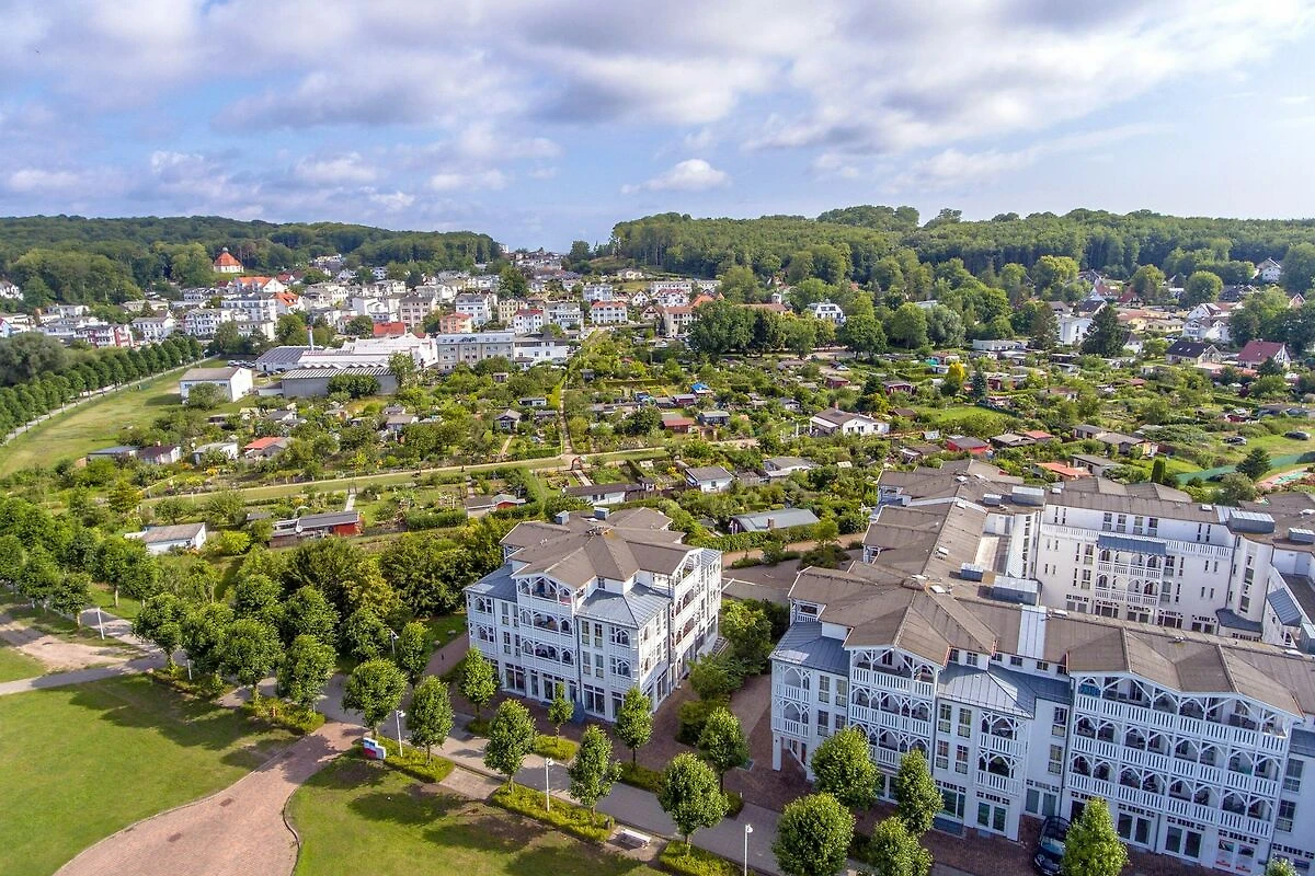 Es gibt eine direkte Anbindung (Fussgängerweg ca. 250m) an den Ortskern - die Wilhelmstrasse, die Selliner Seebrücke und zum Hauptstrand führt. In den Ladenpassagen des Seeparks Sellin finden Sie Restaurants, ein Eiscafé, einen Fahrradverleih, eine Drogerie, Souvenirs und vieles mehr. Gegenüber ist ein grosser EDEKA-Markt. Dort finden Sie auf 1.400 qm auch eine Bäckerei, Post/Postbank und Lotto.