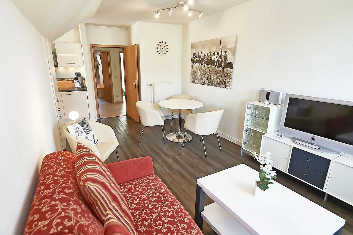 Dieses Appartement im zweiten Obergeschoss ist ideal geeignet für 1-4 Personen. Wir bitten um Verständnis im Interesse unserer Gäste mit allergischen Beschwerden, dass wir das Mitbringen von Haustieren in dieser Wohnung nicht gestatten.