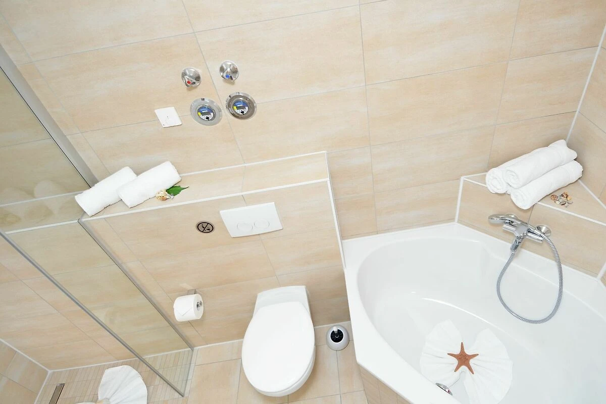 Ein hauseigener Saunabereich mit Ruhezone (gegen Gebühr) sowie ein kleiner Spielplatz für die jüngsten Gäste gehören ebenso zu den Annehmlichkeiten der Villa Rosa, wie eine Tiefgarage (Zufahrtshöhe max. 2 Meter, z.T. Duplexparker) und ein Fahrstuhl.