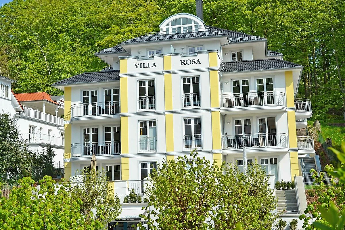 Die Villa Rosa wurde 2012 neu gebaut und besticht durch ihre moderne und an die Bäderarchitektur angelehnte Architektur. Über die Wilhelmstrasse sind es nur ca. 350 Meter bis zum Selliner Hauptstrand mit der Seebrücke. Einkaufsmöglichkeiten, Restaurants und der Kurpark am Friedensberg in unmittelbarer Nachbarschaft laden zum Bummeln und Verweilen ein.