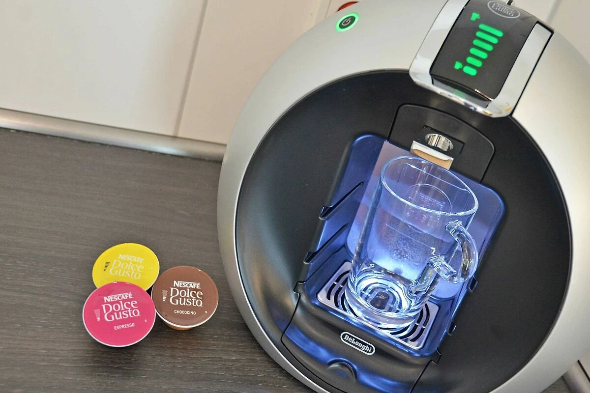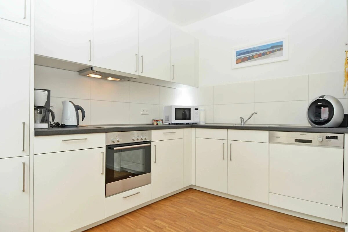 Die Küche ist hochwertig ausgestattet mit einem Kühlschrank mit Gefrierfach, Backofen, 4-Platten-Cerankochfeld, einer Mikrowelle und einer Geschirrspülmaschine. Ein Nescafé Dolce Gusto-Kapselautomat sowie umfangreiche Küchenaccessoires (u.a. Eierkocher, Toaster, Wasserkocher, Kaffeemaschine, Mixer, Pürierstab) komplettieren die tolle Ausstattung.