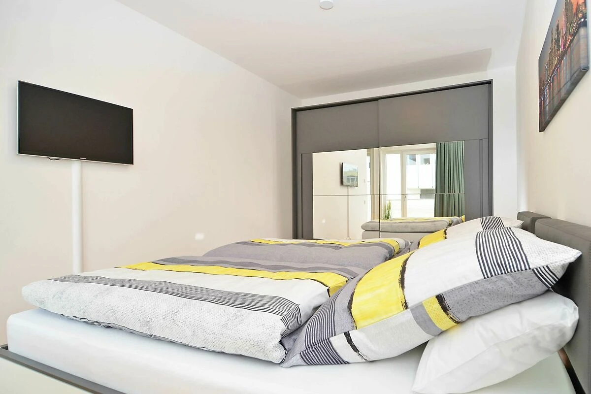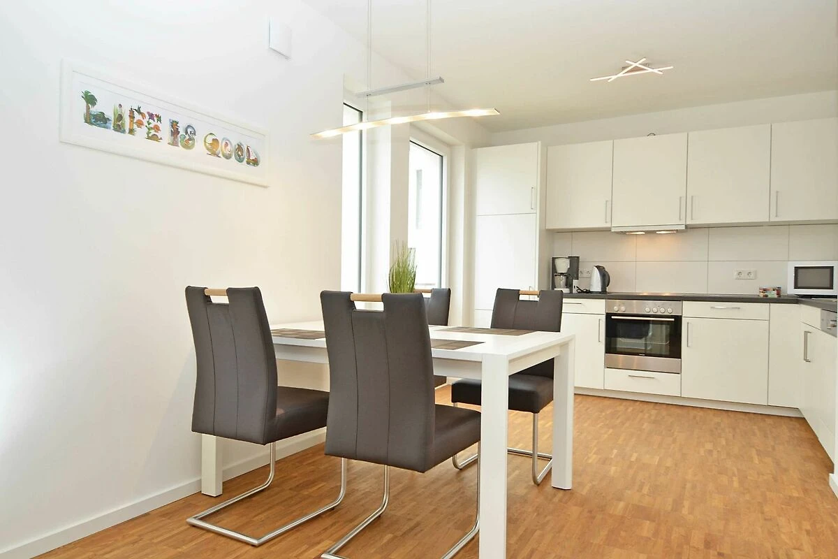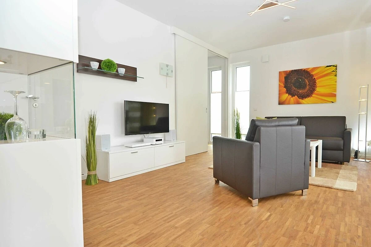 Das rund 68 m² grosse, hochwertig und geschmackvoll eingerichtete 2-Raum-Appartement erwartet Sie im 1. Obergeschoss und ist bequem mit dem Fahrstuhl zu erreichen. Die Nichtraucher-Wohnung ist ideal für 2 Personen, kann jedoch auch von 3 Personen genutzt werden und ist dafür grosszügig eingerichtet und komplett ausgestattet. Echtholzparkett in den Wohnräumen und Fussbodenheizung im gesamten Appartement unterstreichen das moderne und angenehme Ambiente.
