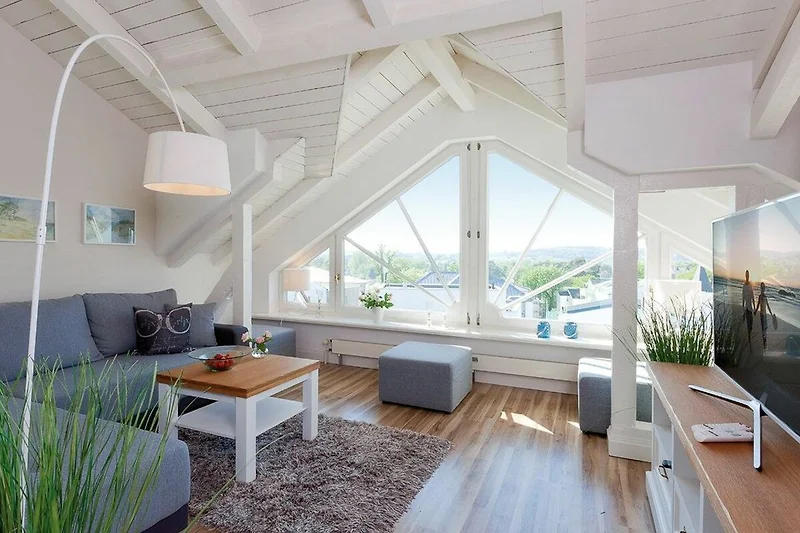 Von den beiden Appartements im Dachgeschoss haben Sie einen fantastischen Blick über Heringsdorf sowie seitlich auf die Ostsee.