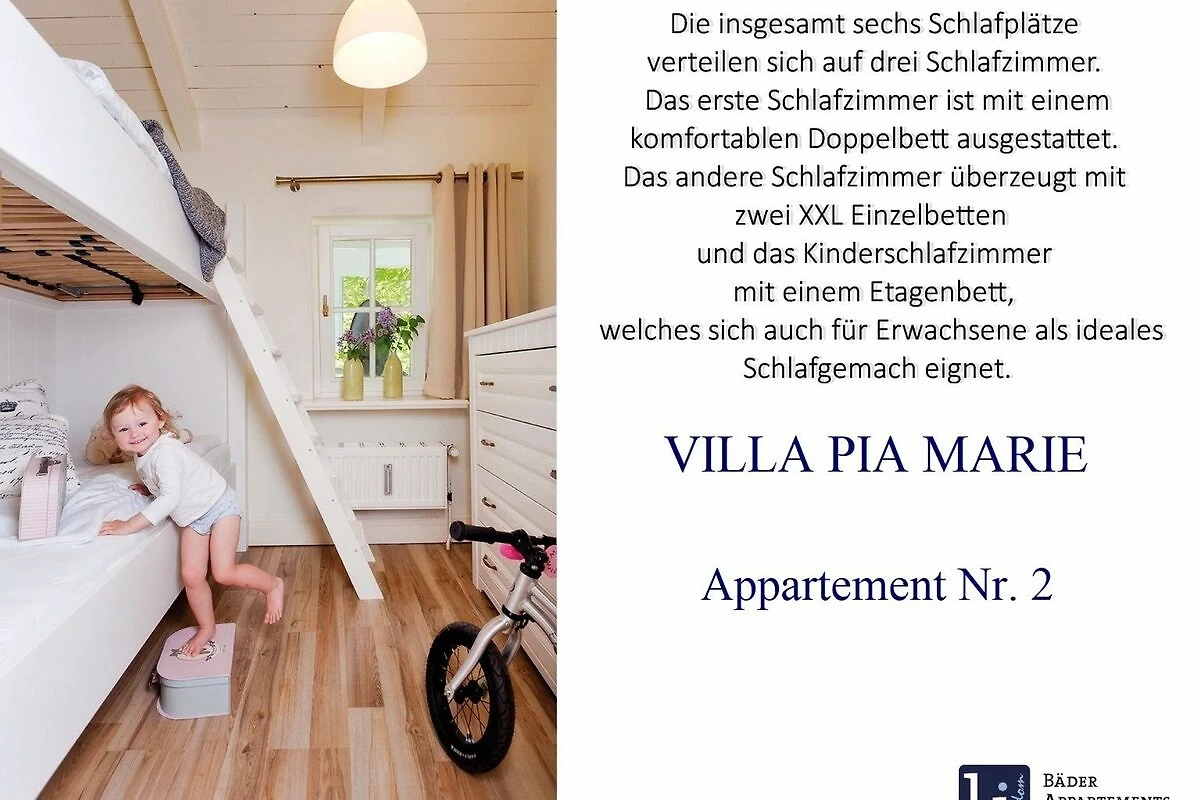 Herzlich Willkommen im Meerestraum Nr. 2 in unserer historischen Villa Pia Marie im schönen Kaiserbad Heringsdorf. Das 4-Raum-Appartement im modernen und gemütlichen Landhausstil befindet sich im Dachgeschoss, hat eine Grösse von 85 Quadratmetern und ist für bis zu 6 Personen das ideale Urlaubsdomizil.