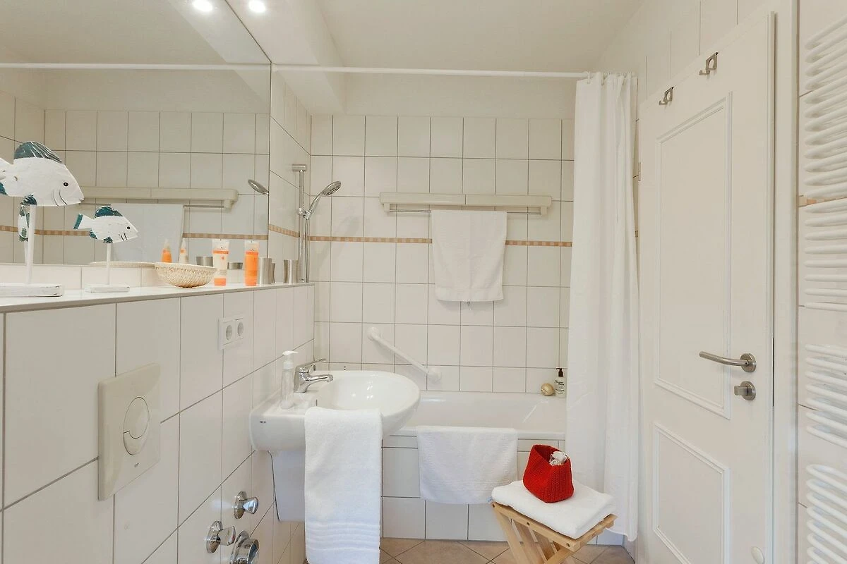 Damit Sie Ihre wohlverdiente Urlaubszeit bereits am Anreisetag in vollen Zügen geniessen können, haben wir das Bett für Sie und das für Ihre lieben Mitreisenden bereits bezogen und ein Duschtuch sowie ein kleines Handtuch bereitgelegt. Das Bad unterstreicht die Annehmlichkeiten dieses Appartements mit Dusche, WC und Haarfön. Unser Sonnenhof-Domizil eignet sich insbesondere für Familien mit 2 Kindern, die einerseits die unmittelbare Nähe zum Strand suchen als auch zentrumsnah ihren Urlaub verbringen möchten.