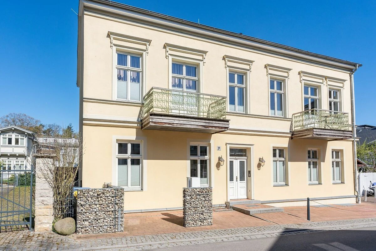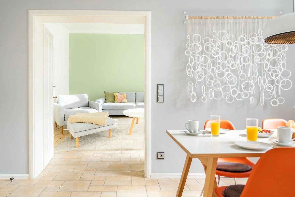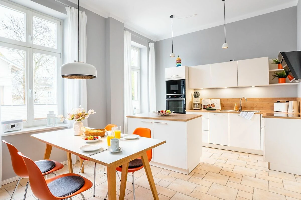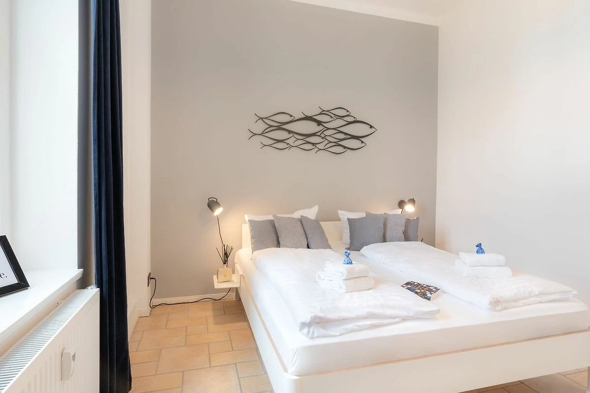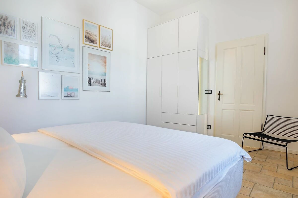 Im 1. OG der Villa Monico gelegen, hat sie einen schönen Süd-Ost-Balkon von welchem Sie aus schon morgens beim ersten Kaffee einen Blick auf die Ostsee werfen können. Bei der Renovierung ist Wert auf hochwertige Designmöbel sowie eine geschmackvolle Atmosphäre gelegt worden. Ideal zum Relaxen ist das geräumige und helle Wohnzimmer, welches Sie durch eine Doppelflügeltür betreten. Von der bequemen Sitzgruppe, oder dem Liegesessel aus haben Sie Blick auf den grossen Flat TV (55 Zoll). Ein kostenloser Netflix-Zugang ist bereits enthalten und bietet somit auch an grauen Herbsttagen eine schöne Abwechslung.