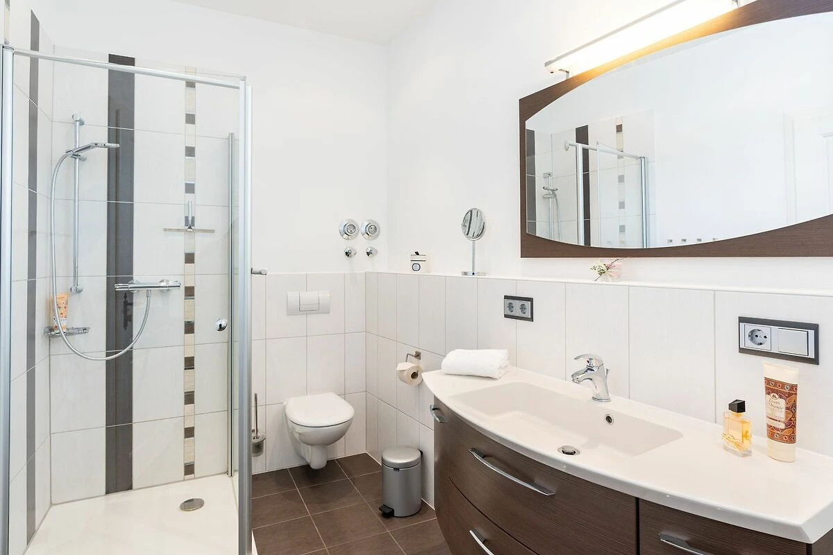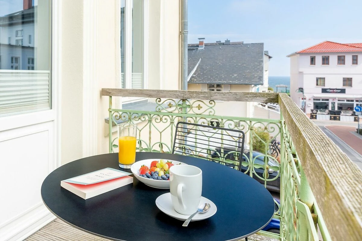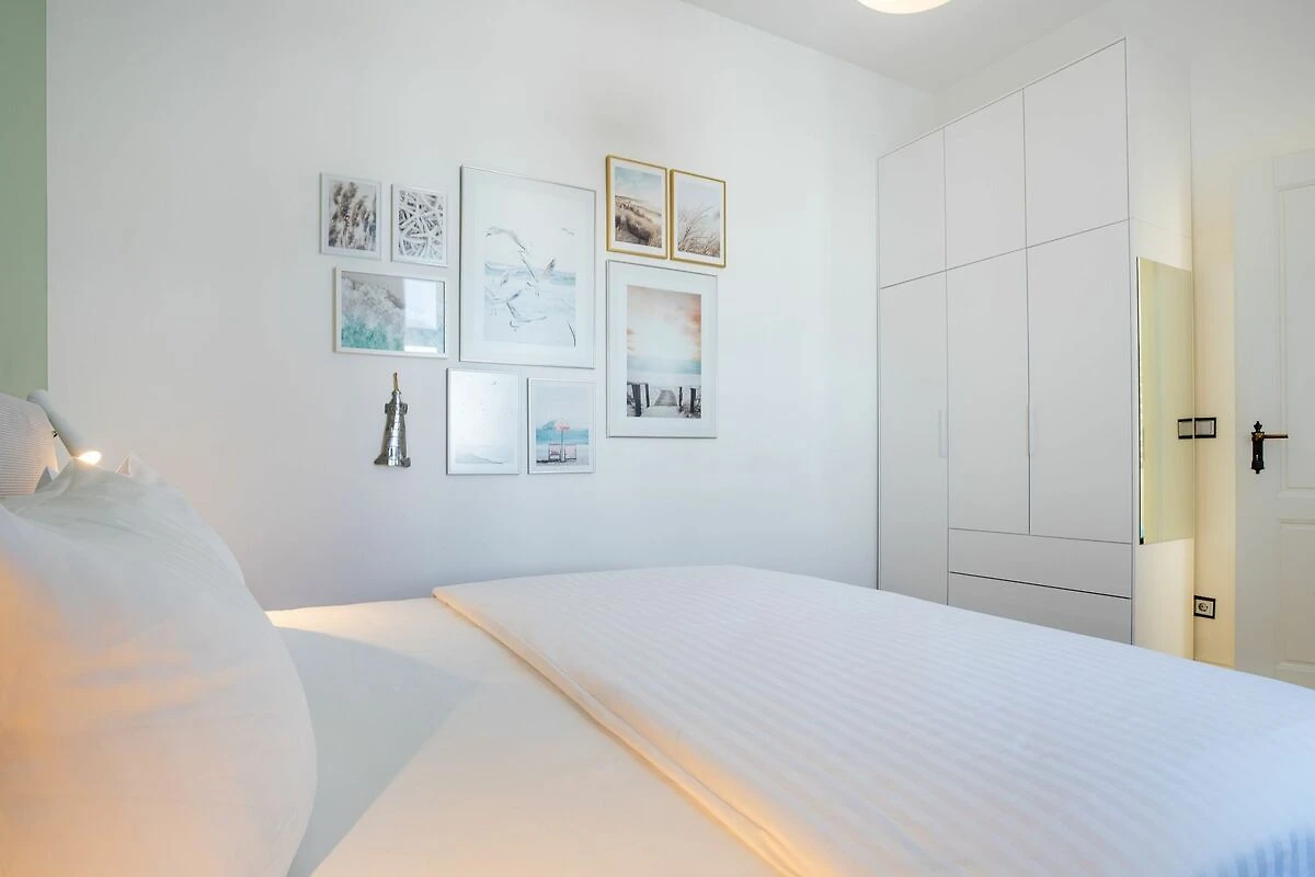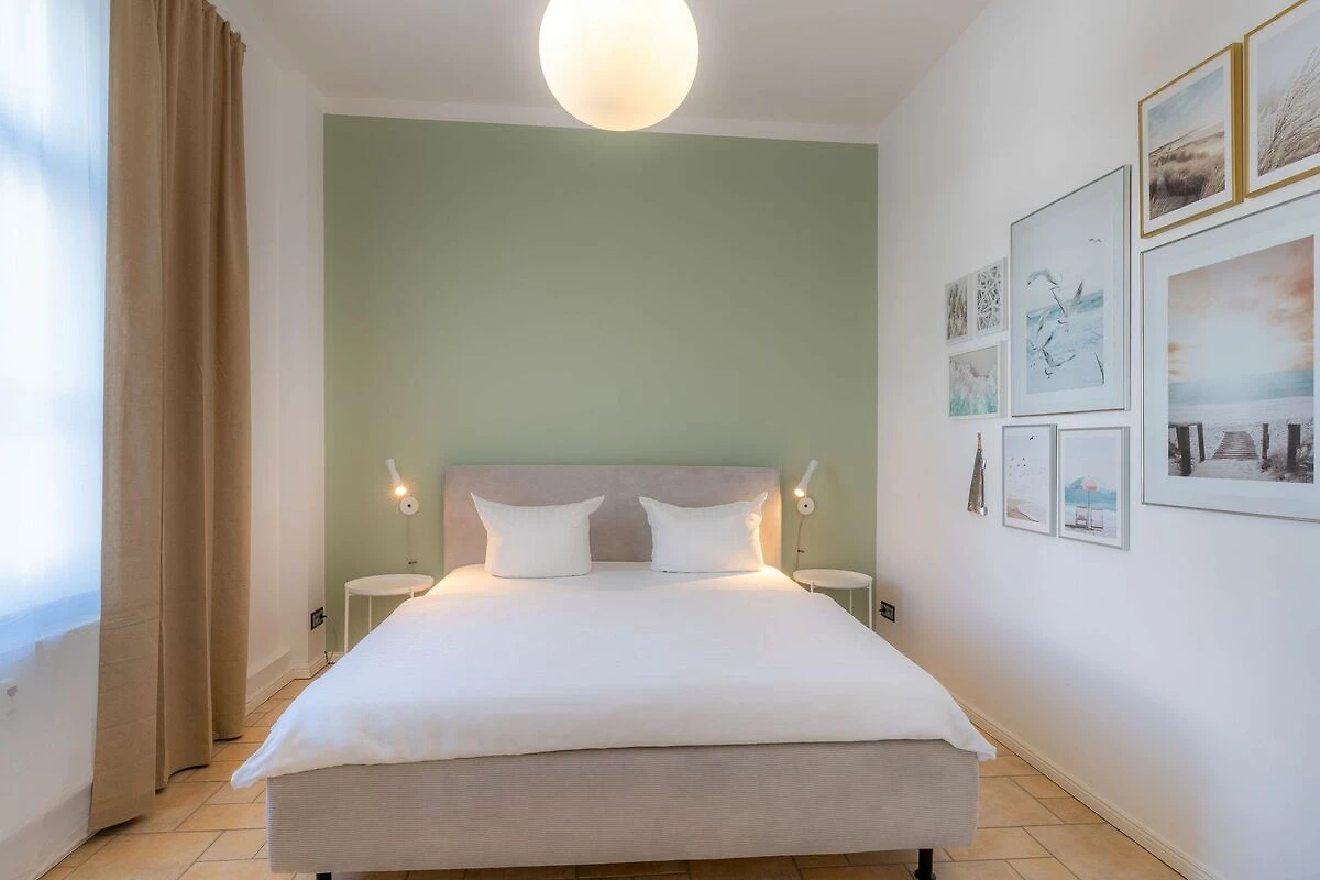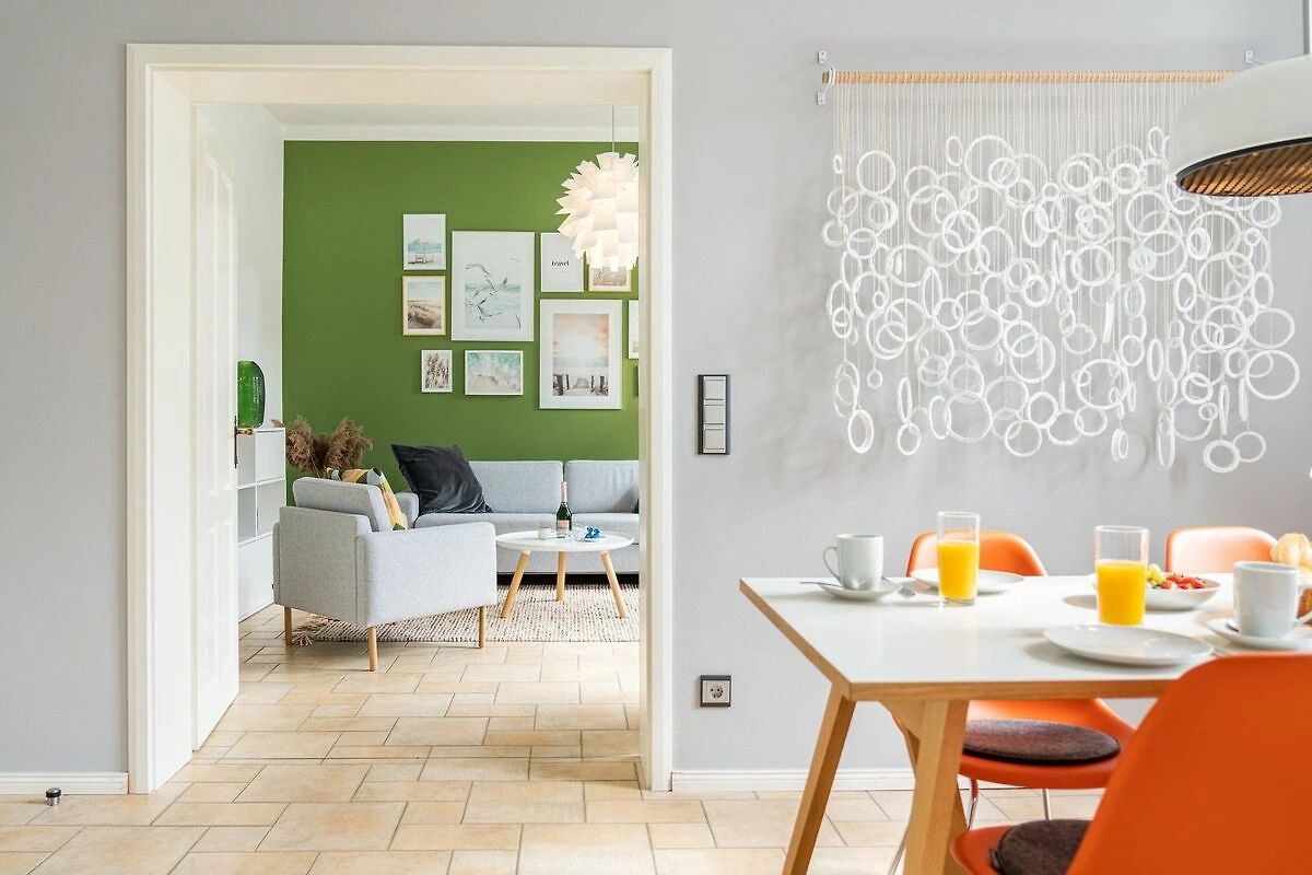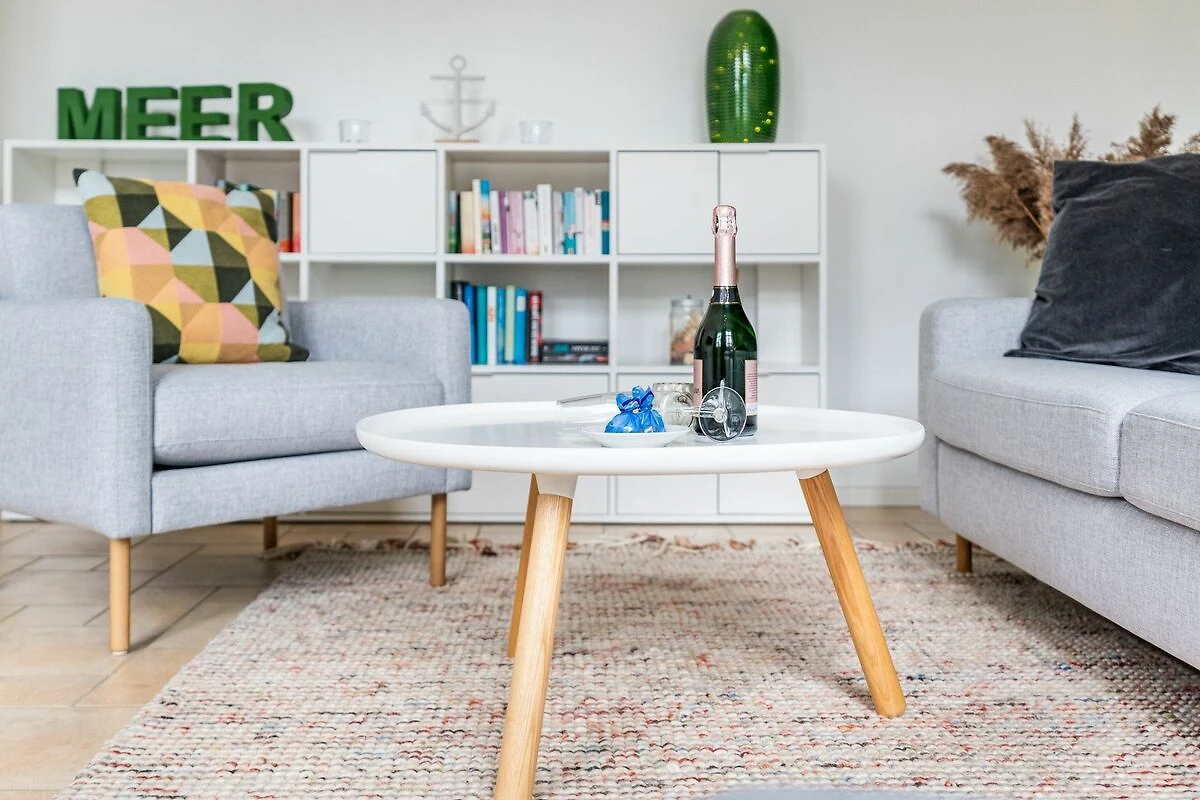 Im 1. OG der Villa Monico gelegen, hat sie einen schönen Süd-Ost-Balkon von welchem Sie aus schon morgens beim ersten Kaffee einen Blick auf die Ostsee werfen können. Bei der Renovierung ist Wert auf hochwertige Designmöbel sowie eine geschmackvolle Atmosphäre gelegt worden. Ideal zum Relaxen ist das geräumige und helle Wohnzimmer, welches Sie durch eine Doppelflügeltür betreten. Von der bequemen Sitzgruppe, oder dem Liegesessel aus haben Sie Blick auf den grossen Flat TV (55 Zoll). Ein kostenloser Netflix-Zugang ist bereits enthalten und bietet somit auch an grauen Herbsttagen eine schöne Abwechslung.