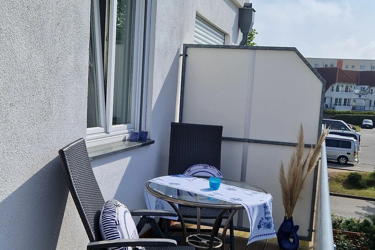 Südausrichtung , Tisch, Stühle und Sonnenschirm